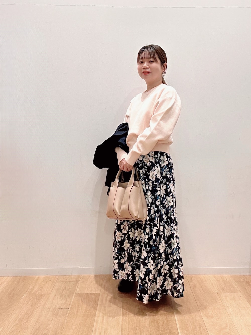 フラワープリントのスカートはウエストゴムでラクチン💡