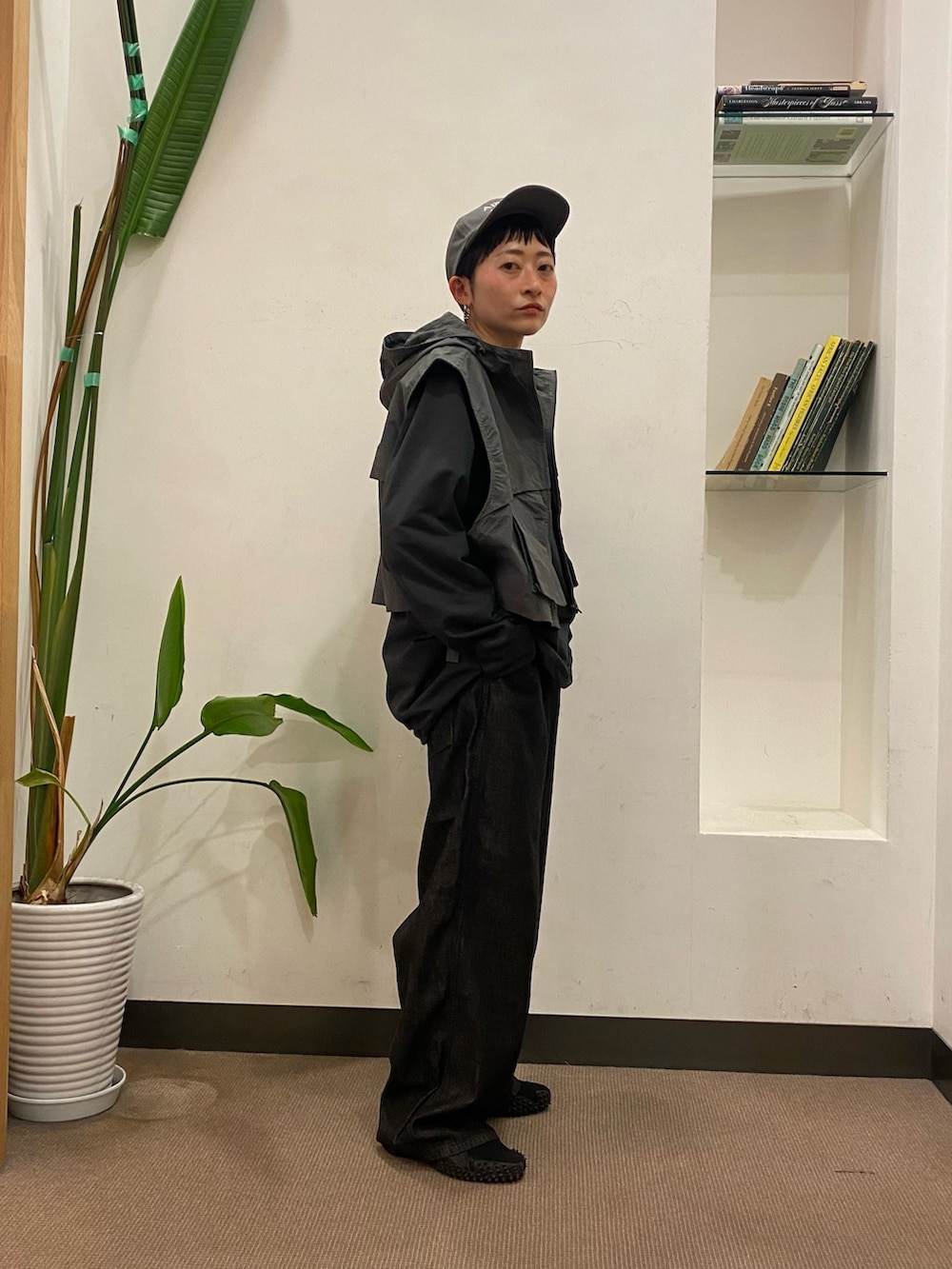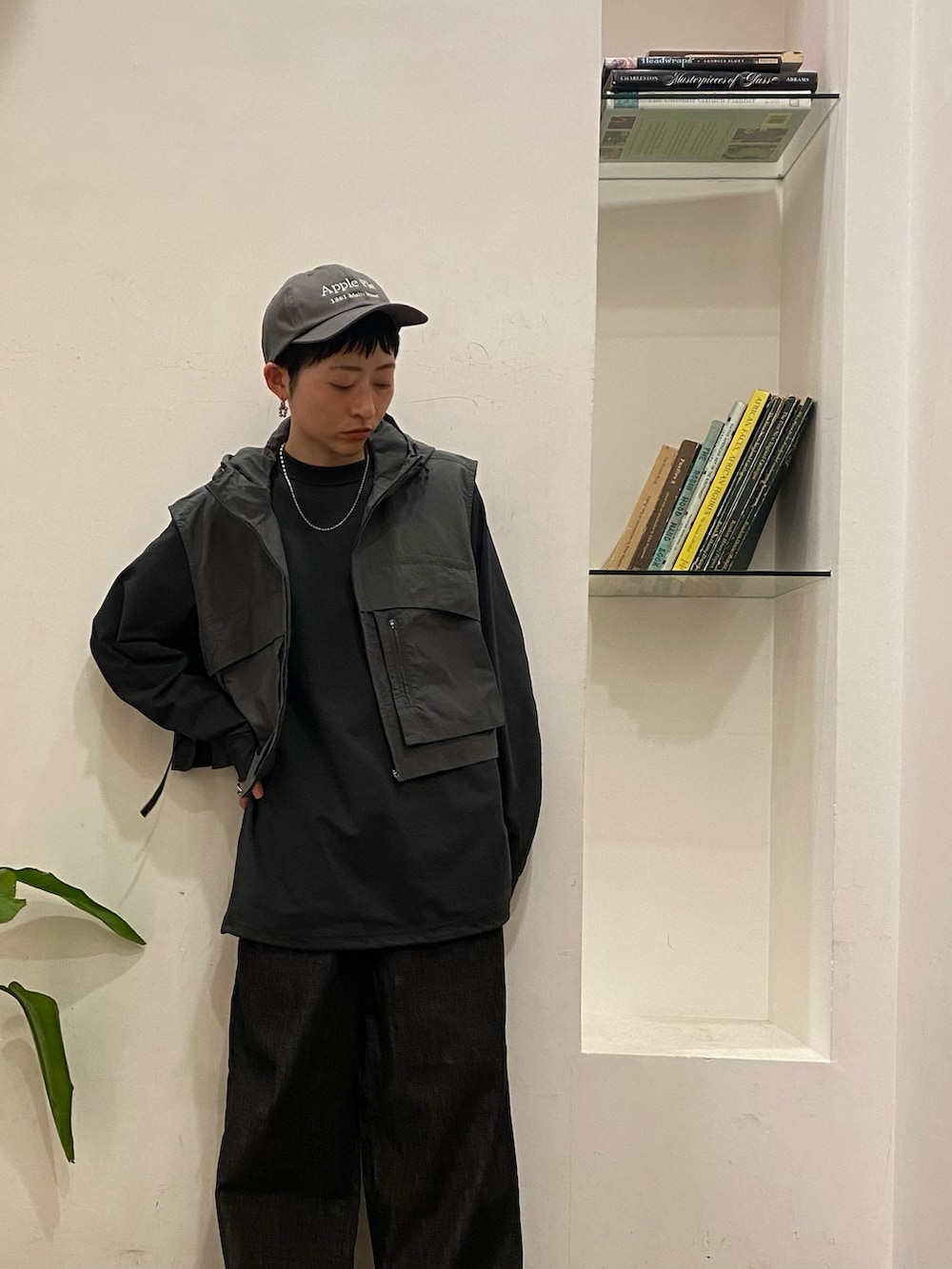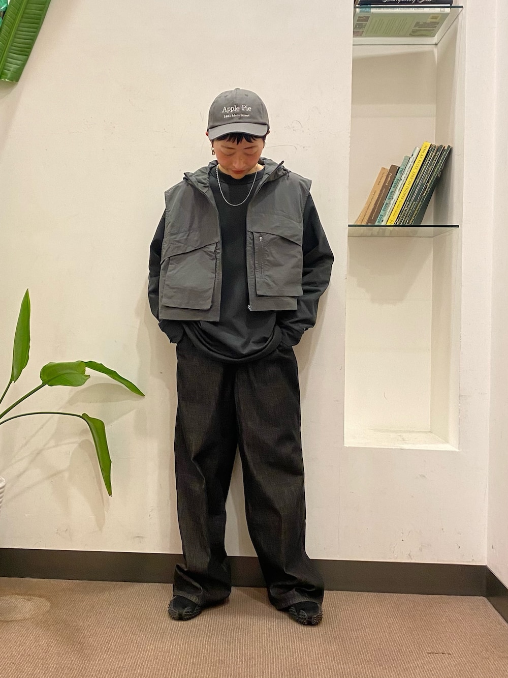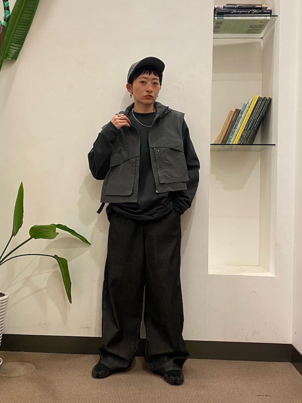 カットソーはあえてメンズにしてオーバー目に着てベストのコンパクトさが引き立つようにしてます!