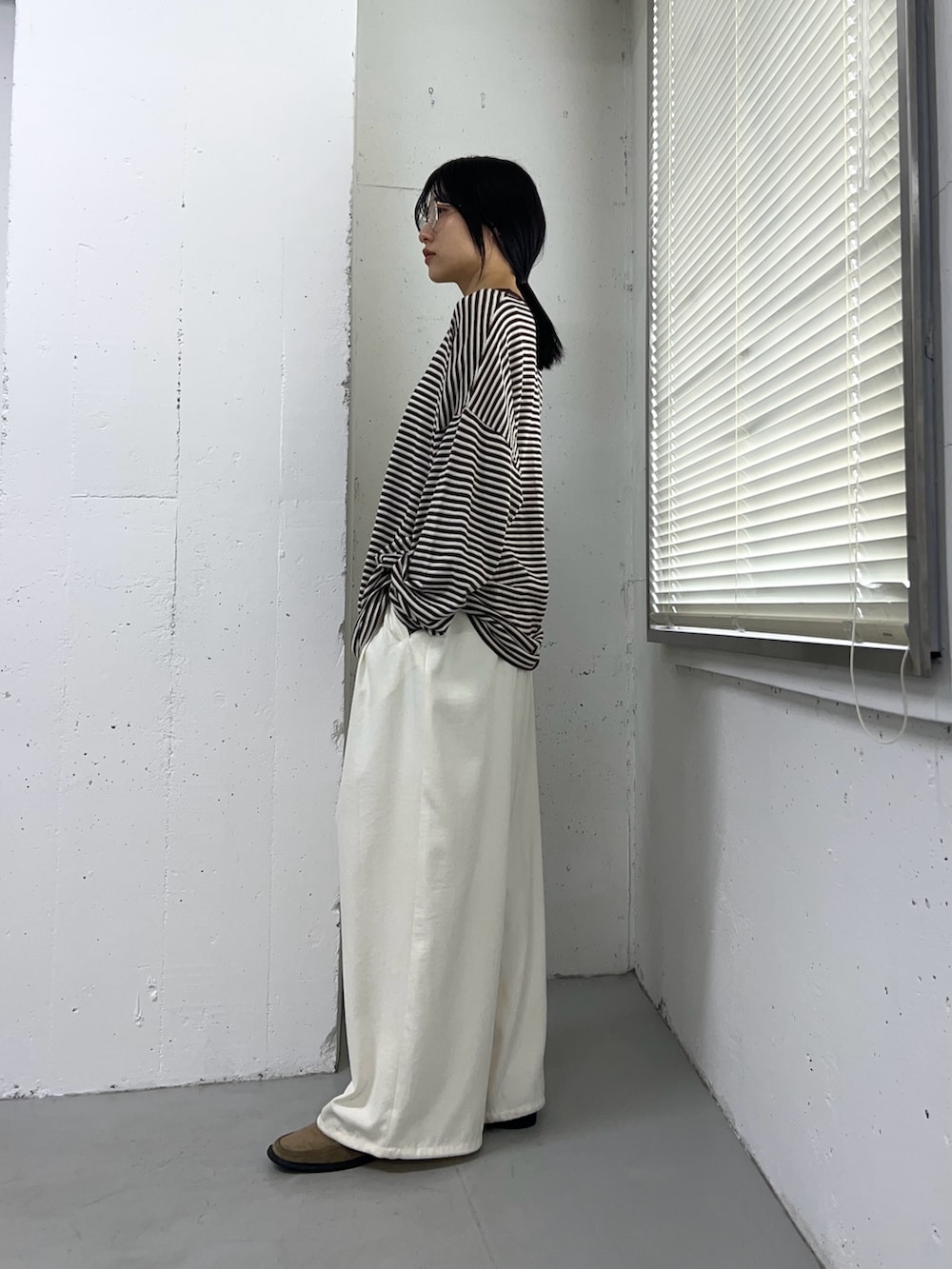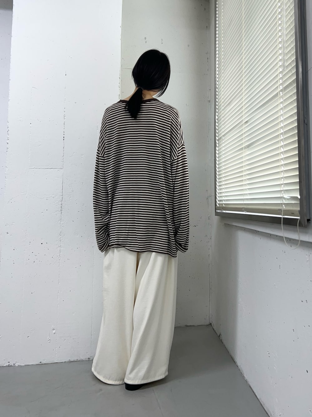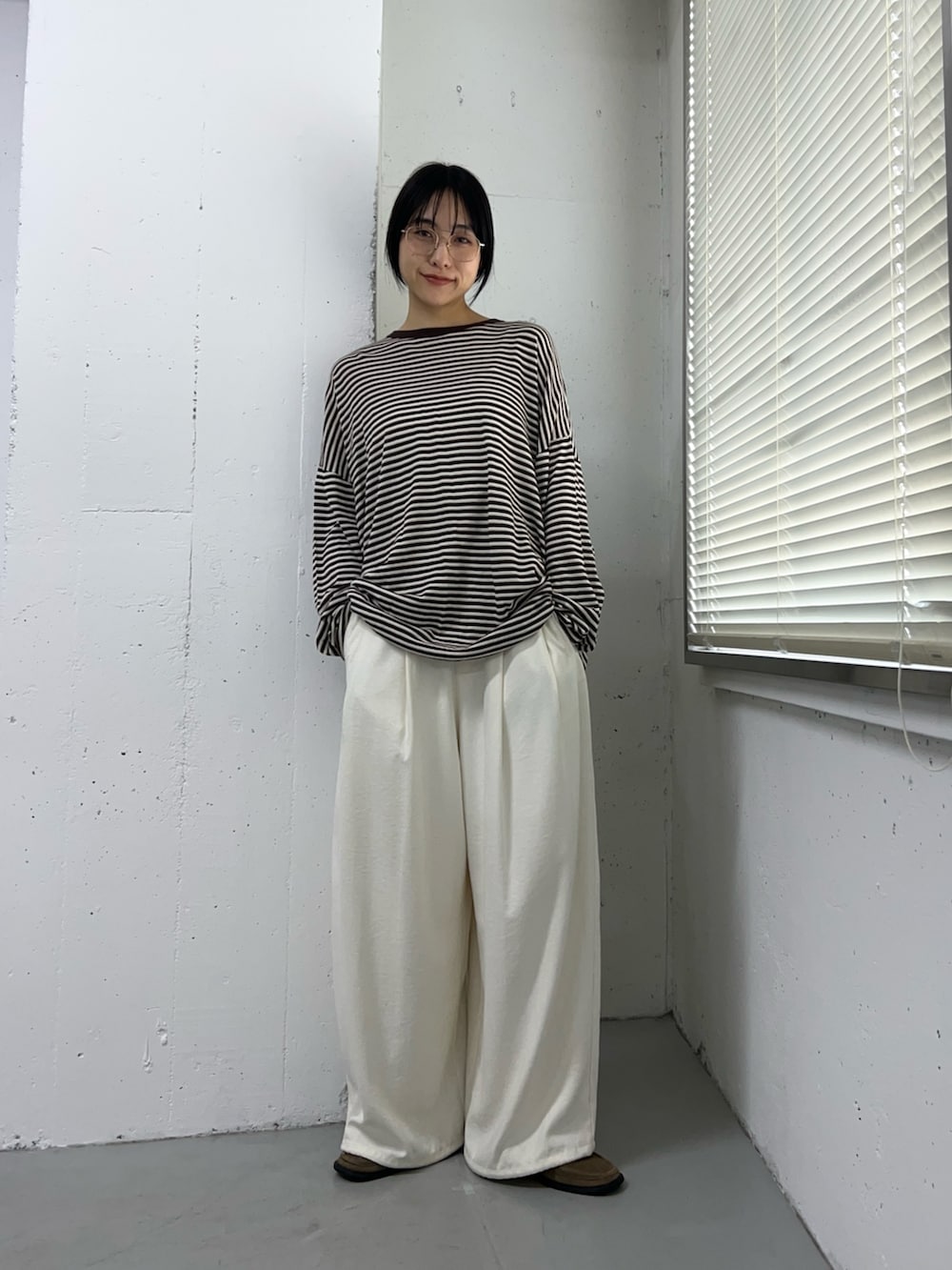 ボーダーのトップスに、ワイドパンツを合わせて着てみました。