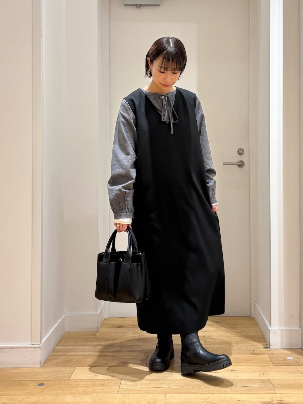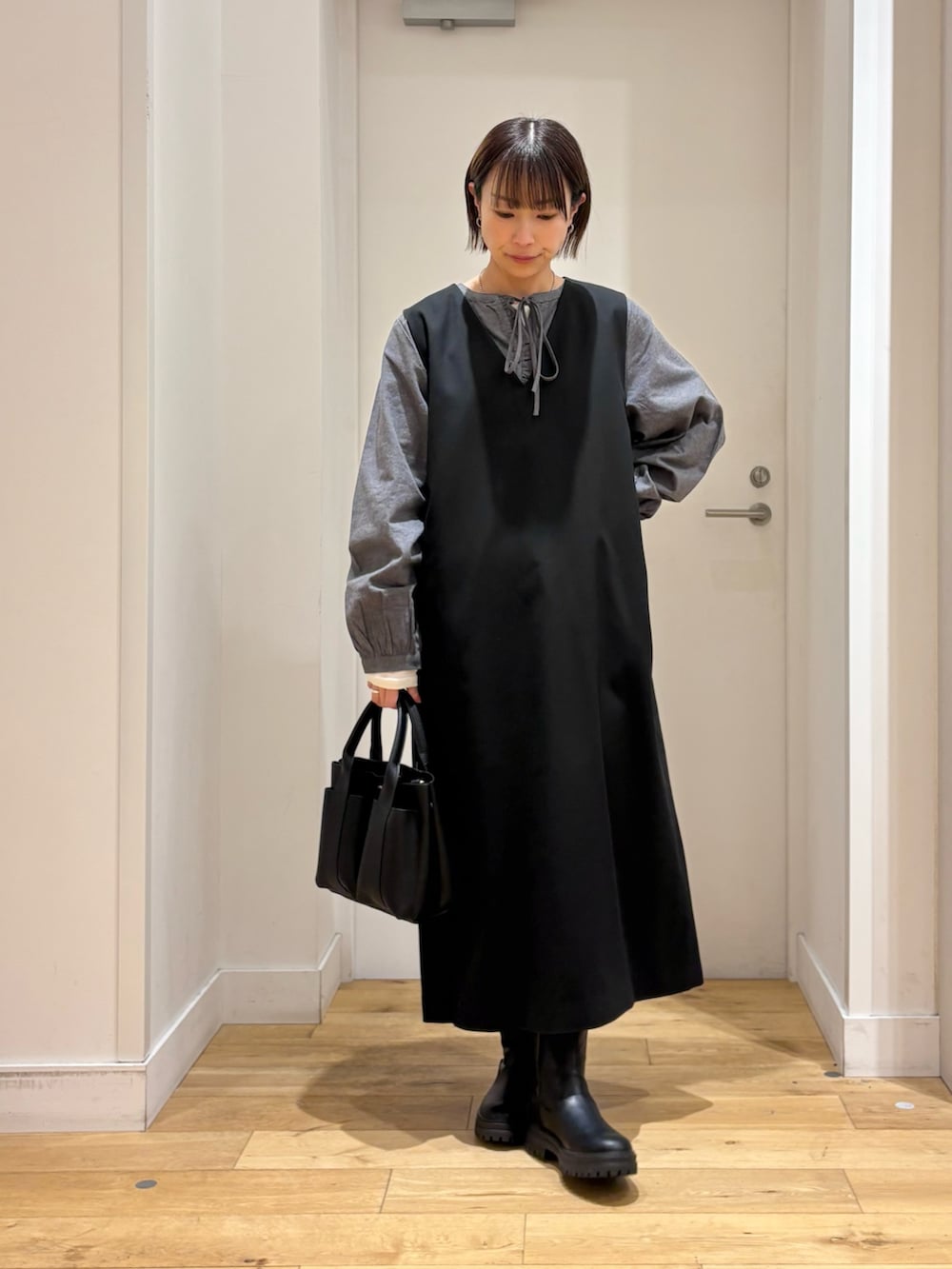 定番のジャンパースカートは、シンプルなデザインなのでどんなインナーとも相性がよく、合わせるアイテムによって雰囲気も変えてコーディネートを楽しめます!
