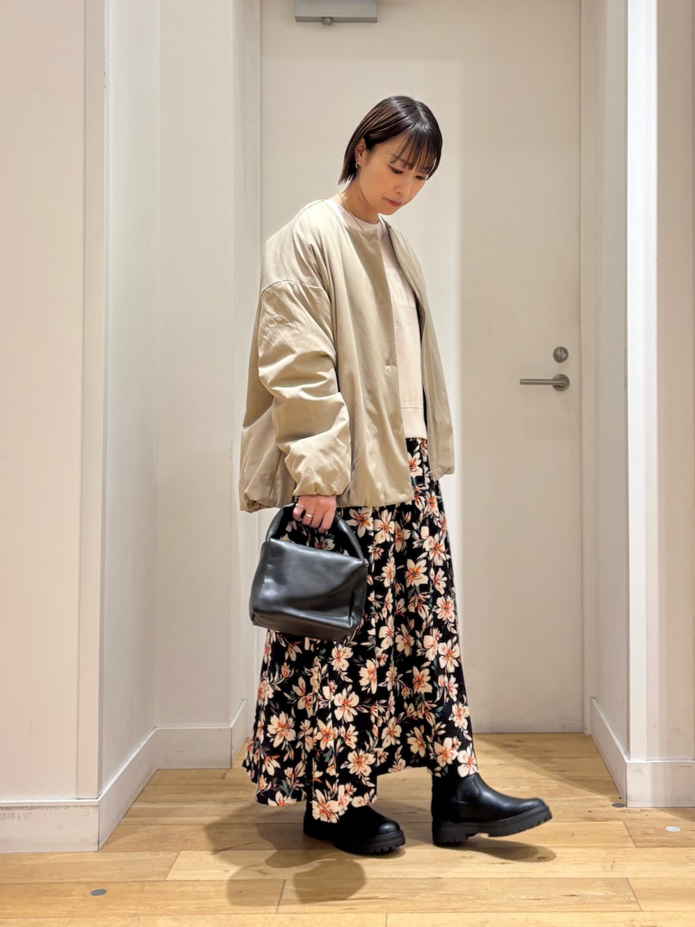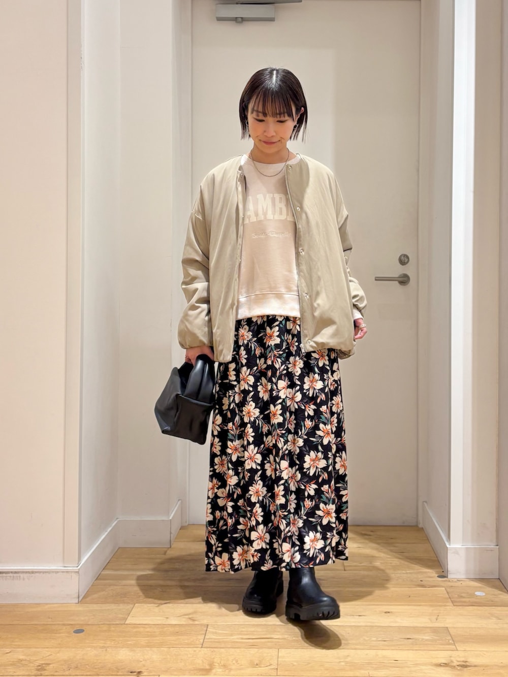 今回はあえてラフなスウェットを合わせてカジュアルにコーディネートしてみました。