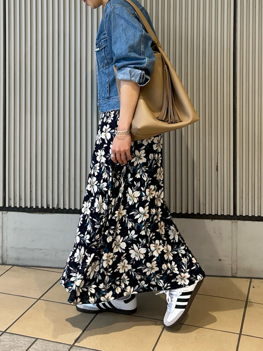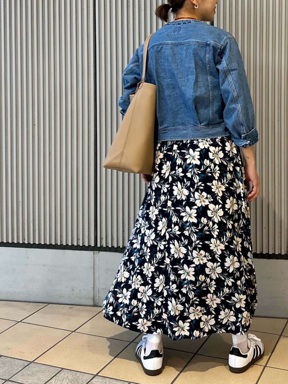 春らしい花柄のスカートを合わせて春を先取りしたコーディネートにまとめました💐