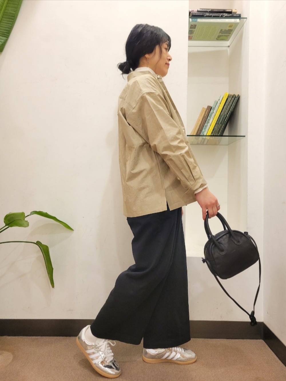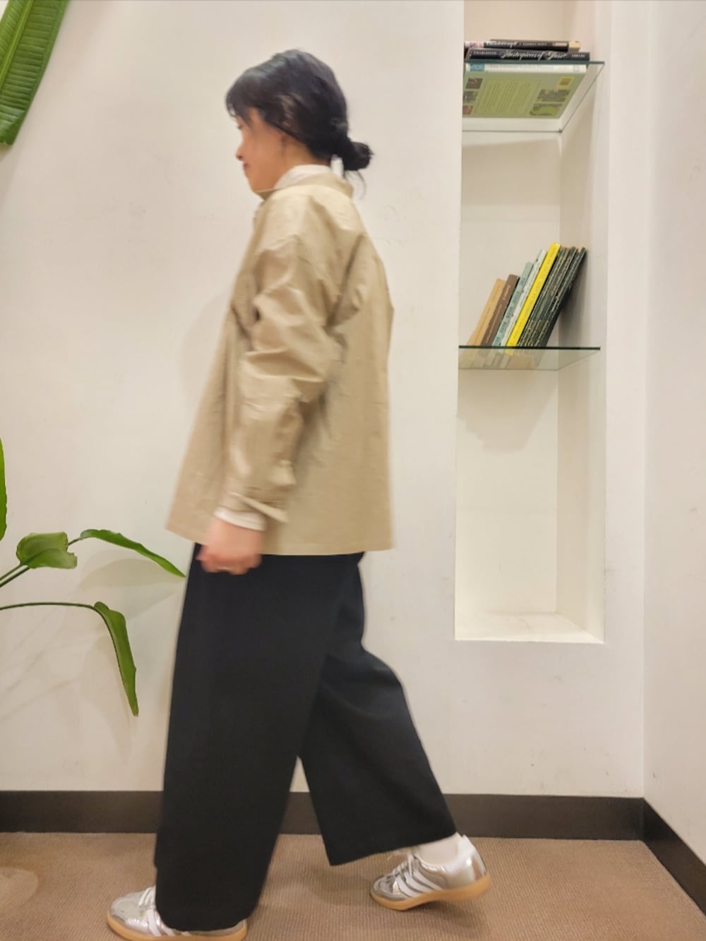 シャツはゆったりで着丈長めで