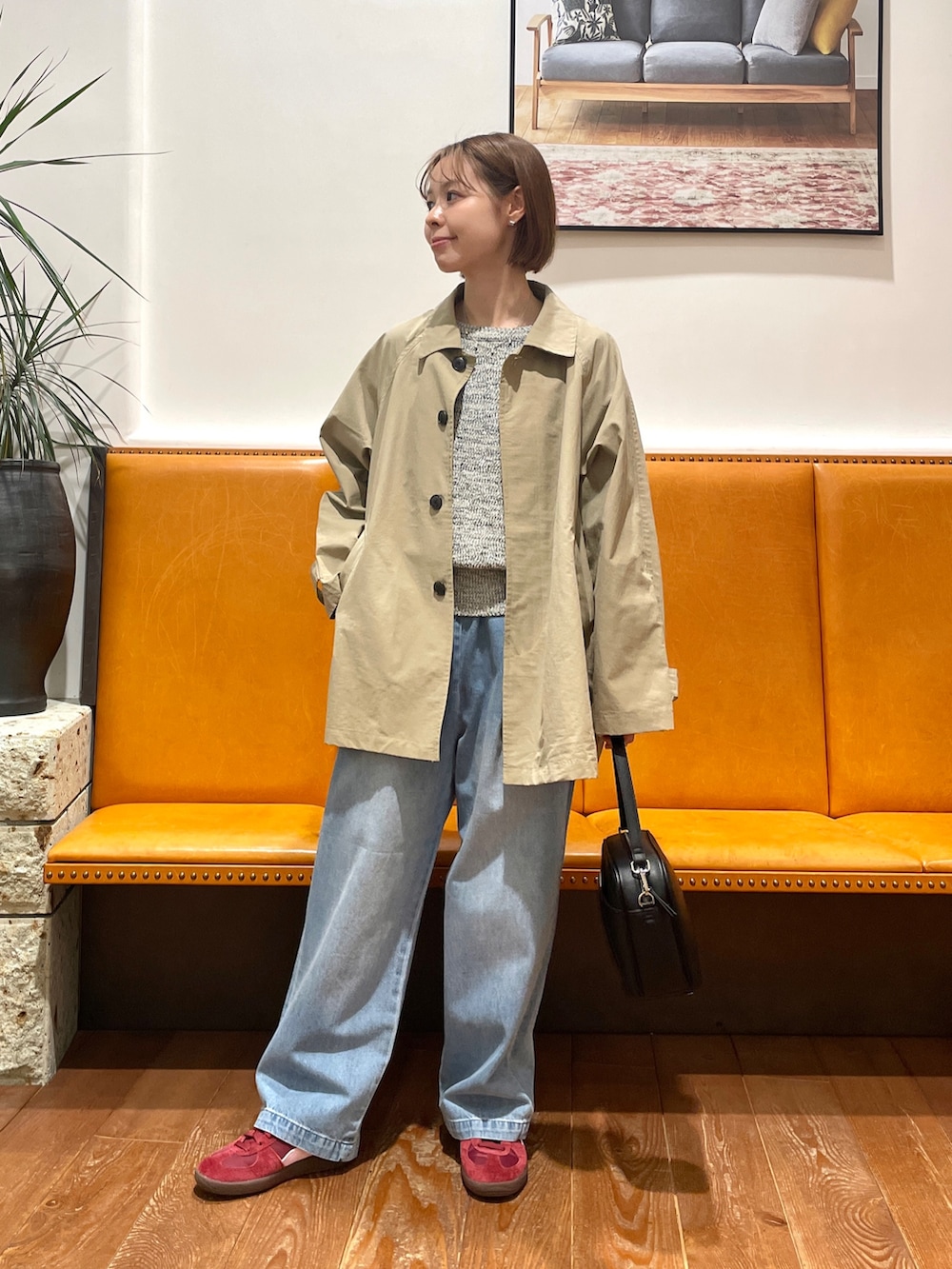 今回はステンカラーテントコートに合わせてコーデを組みました。