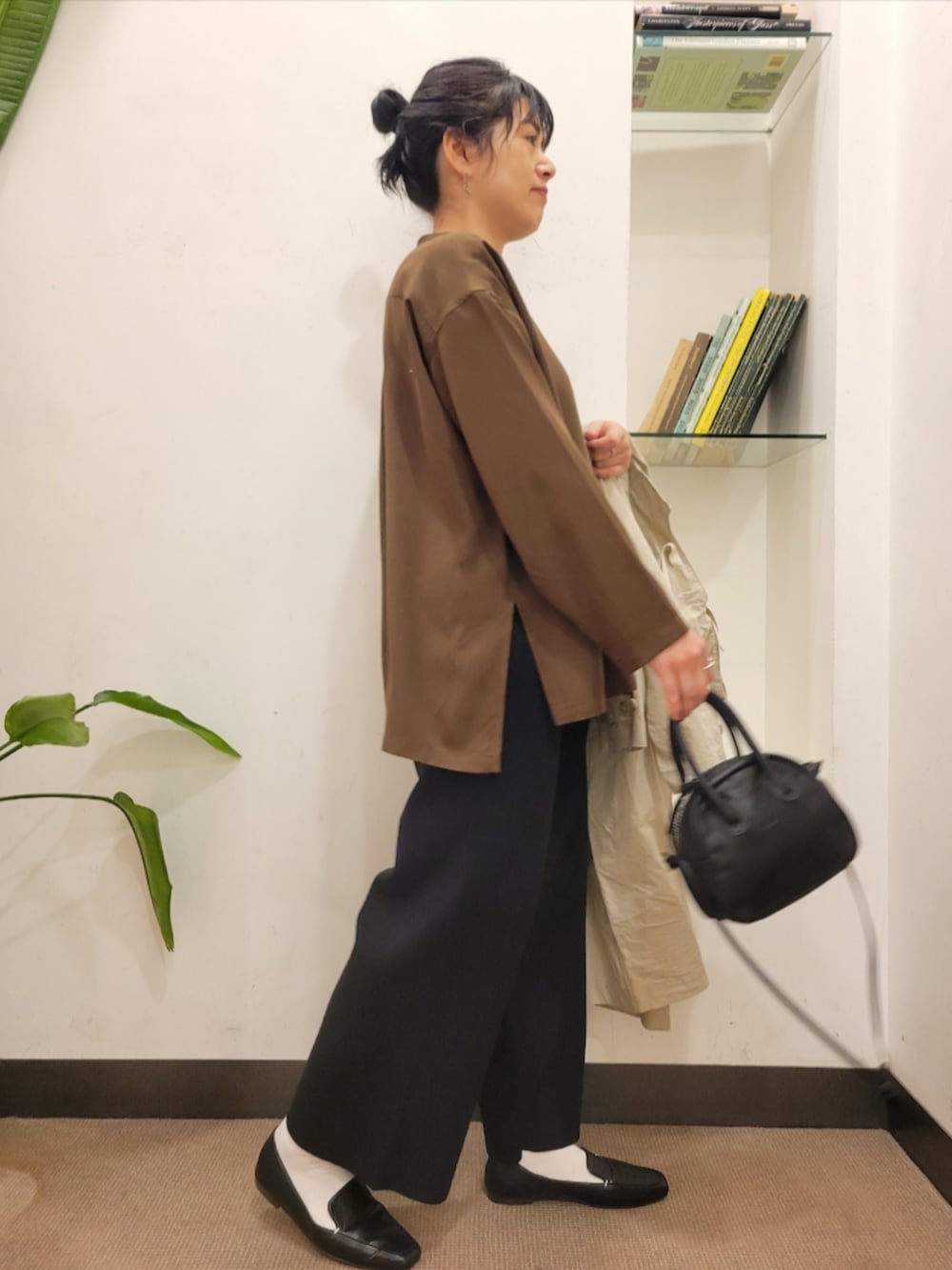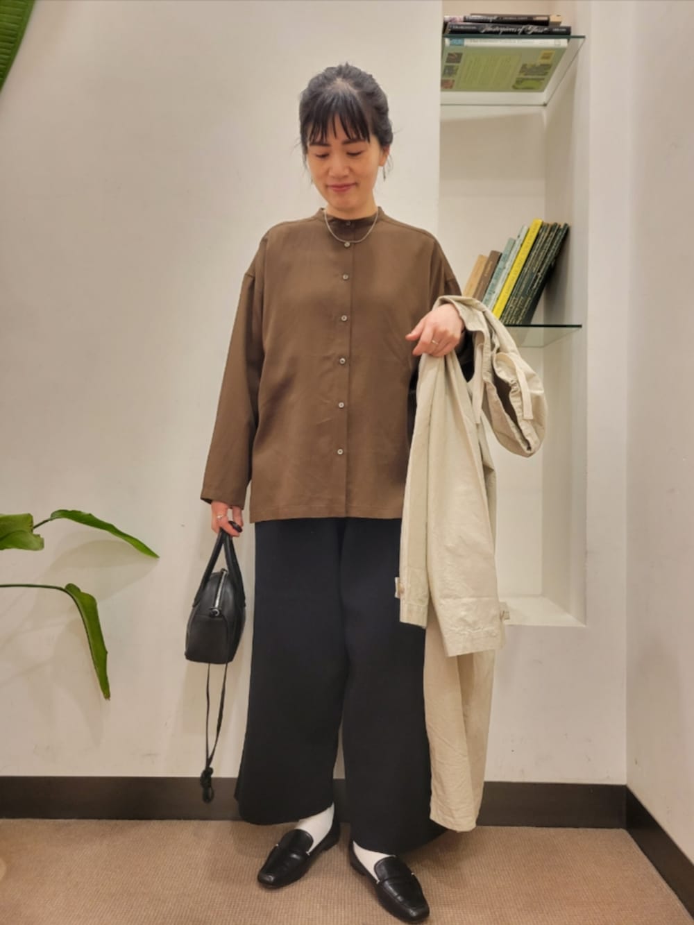 厚手のアイテムも中に着やすいです。
