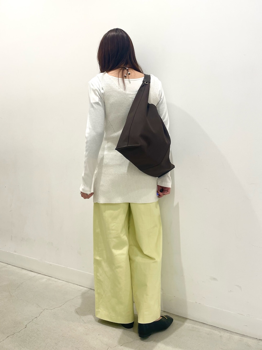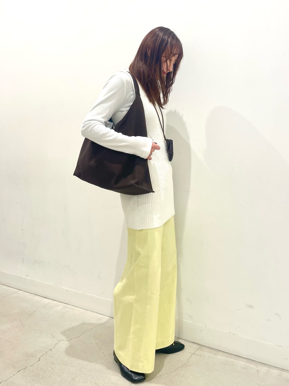 優しいイエローなのでカラーアイテムでも着るだけで柔らかい印象になります◎