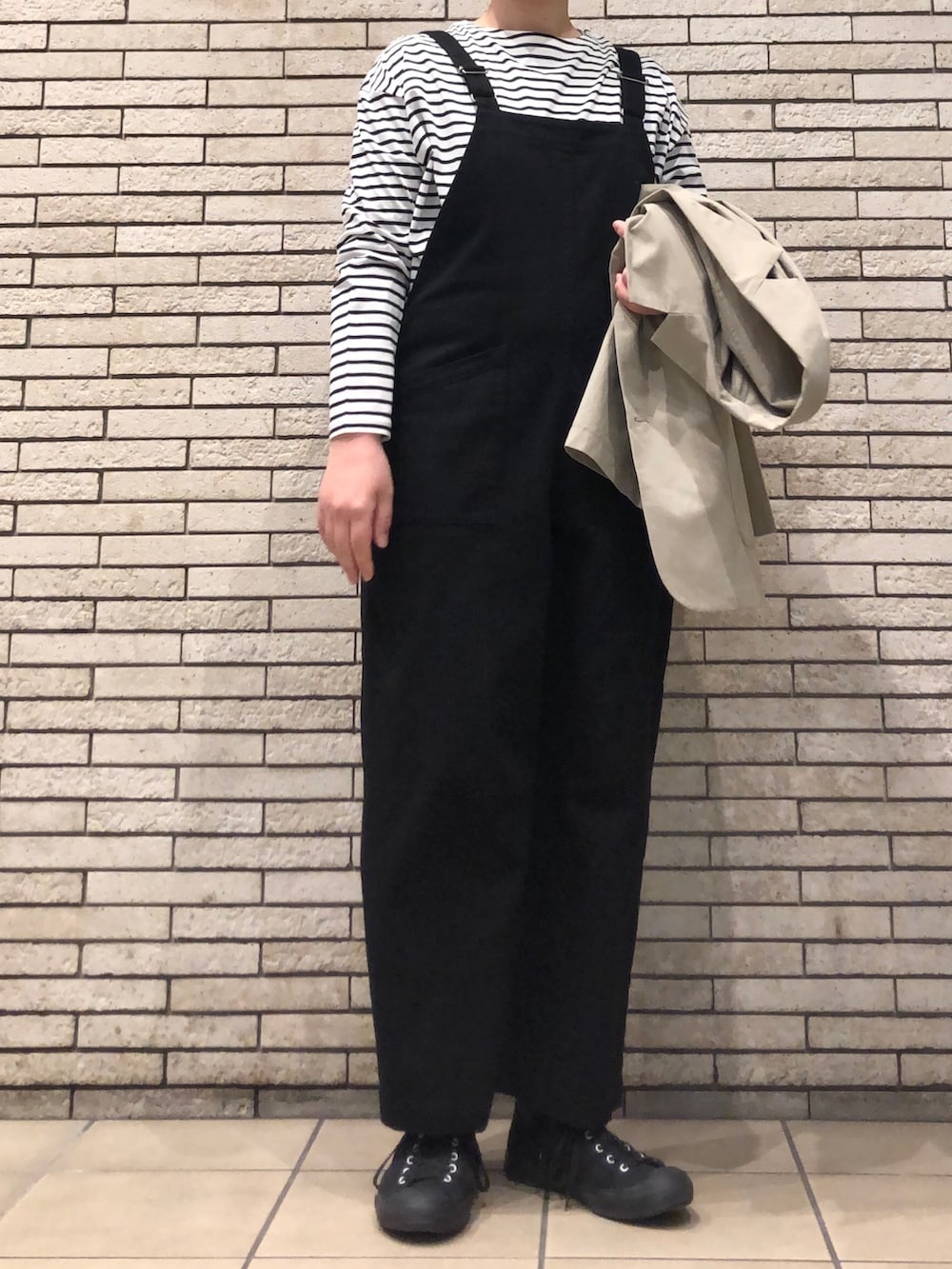 サロペットにFORK&SPOONのジャケットを羽織った大人カジュアルです。