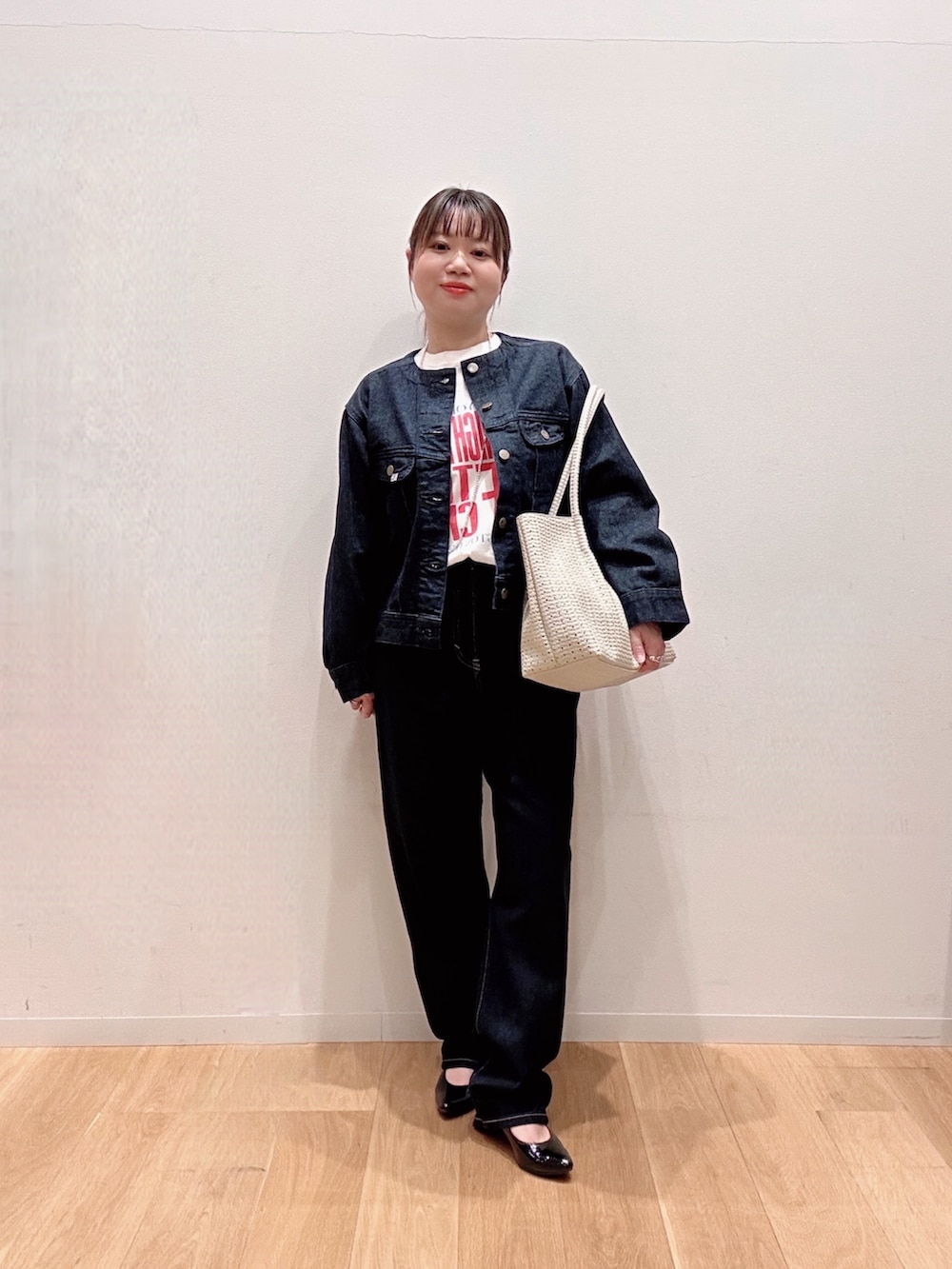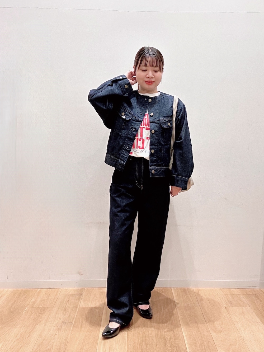 ジャケットはノーカラーで大きすぎず小柄さんでも着用⭕️