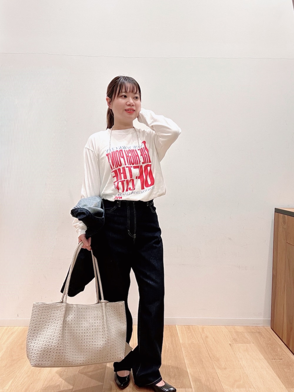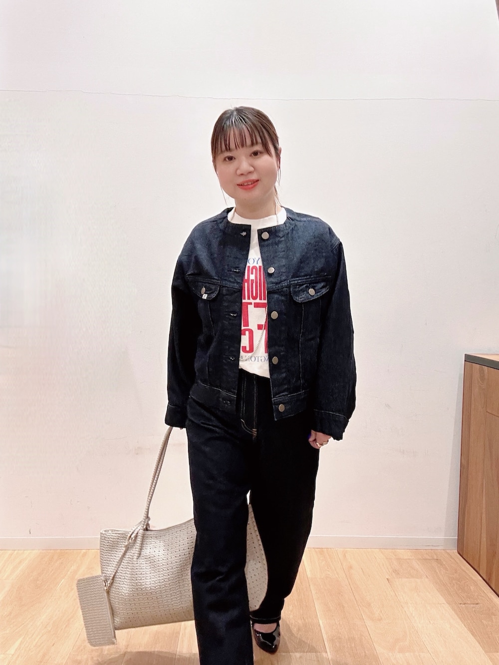 ボトムのテーパードデニムは股上が深く足のラインがキレイに見えるシルエット✨