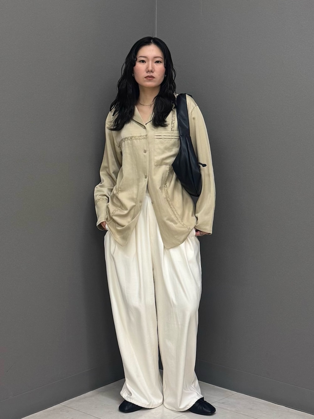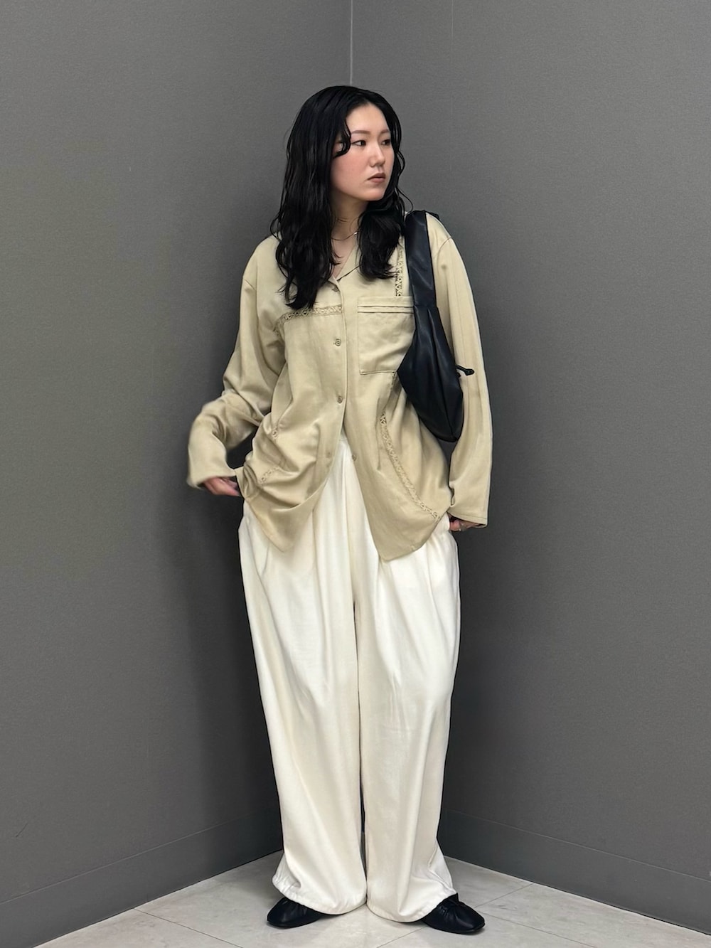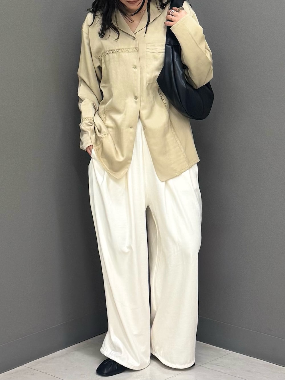 ボトムスはこの春大活躍間違いなしのワイドパンツを合わせて、きれいめカジュアルスタイルにしてみました!