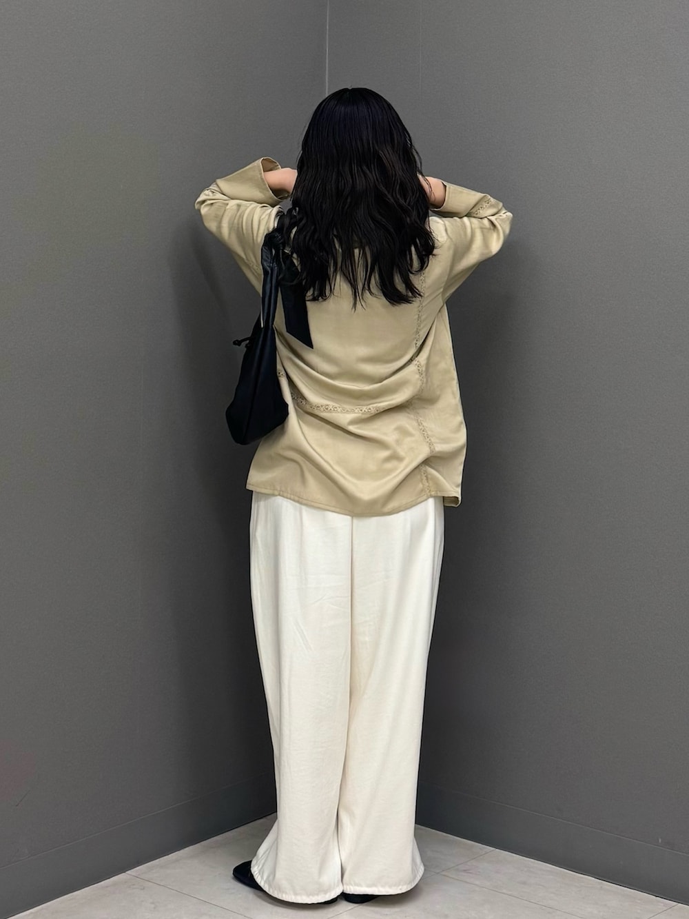 同素材のサテンバルーンパンツ(KB26130-2045050)とセットアップでの着こなしもおすすめです🌟
