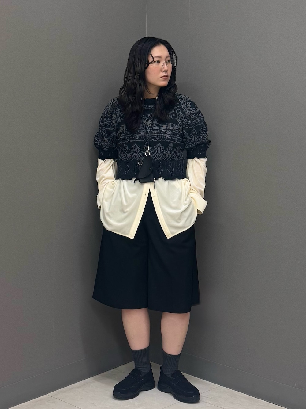 KBF『一部WEB限定カラー』ミニブークレレイヤードニットシャツ- カラー: