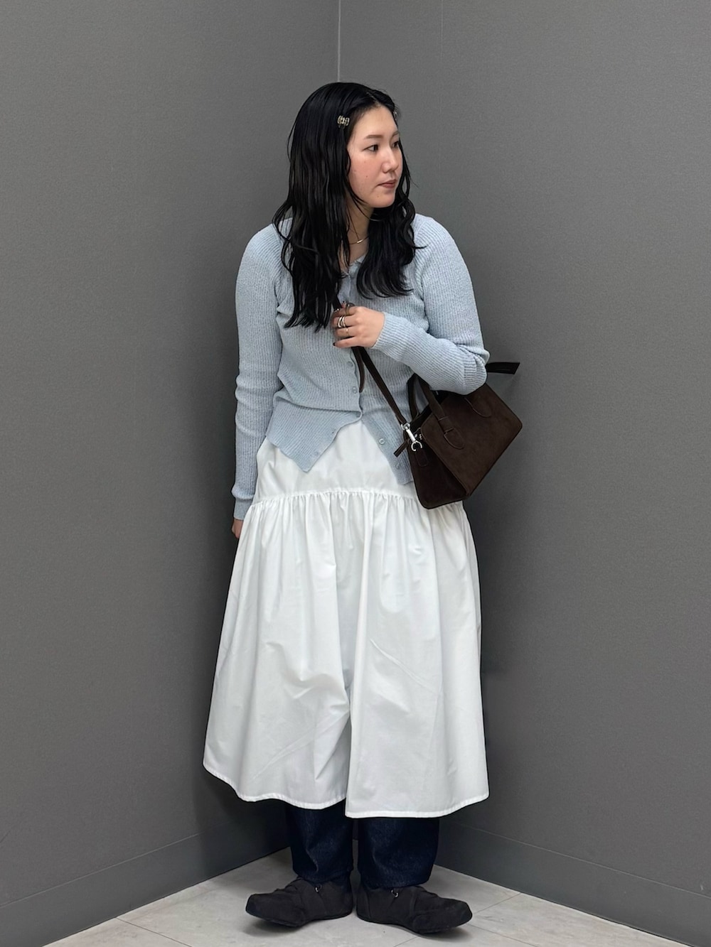 レディライクなアイテムなのでデニムに重ね着してレイヤードスタイルに📚