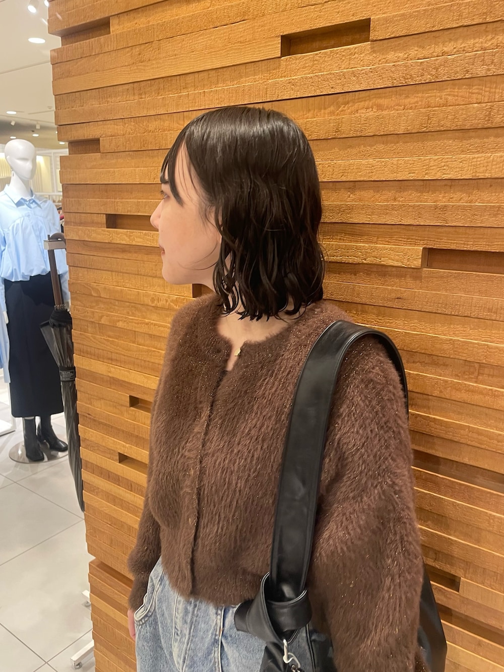 スタイルアップ効果のある、すっきりとしたショート丈・シーズンムードを高める、温かみのあるシャギー素材・ボタンを閉めてトップスとしても楽しめる2WAY 仕様温かみのあるシャギーになっています🤎