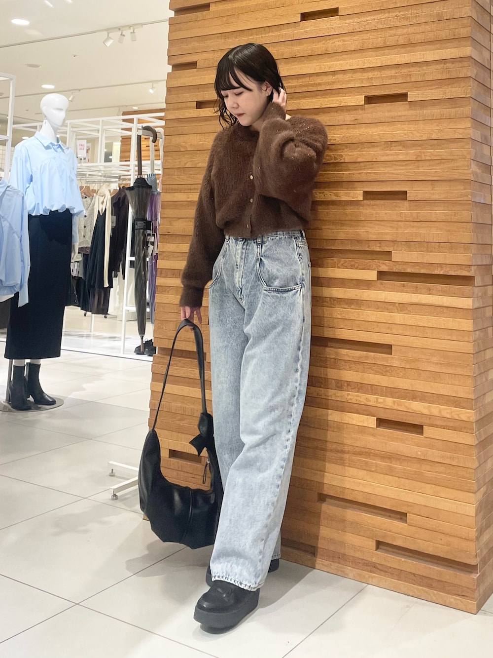 今回は一枚で華やかシヤギーニットカーディガンを着てみました