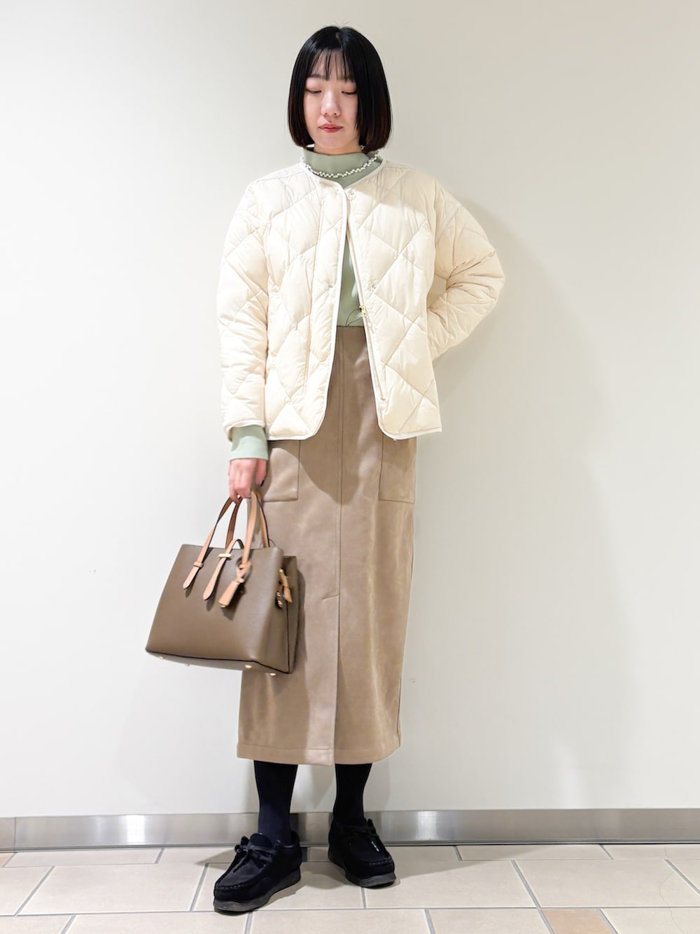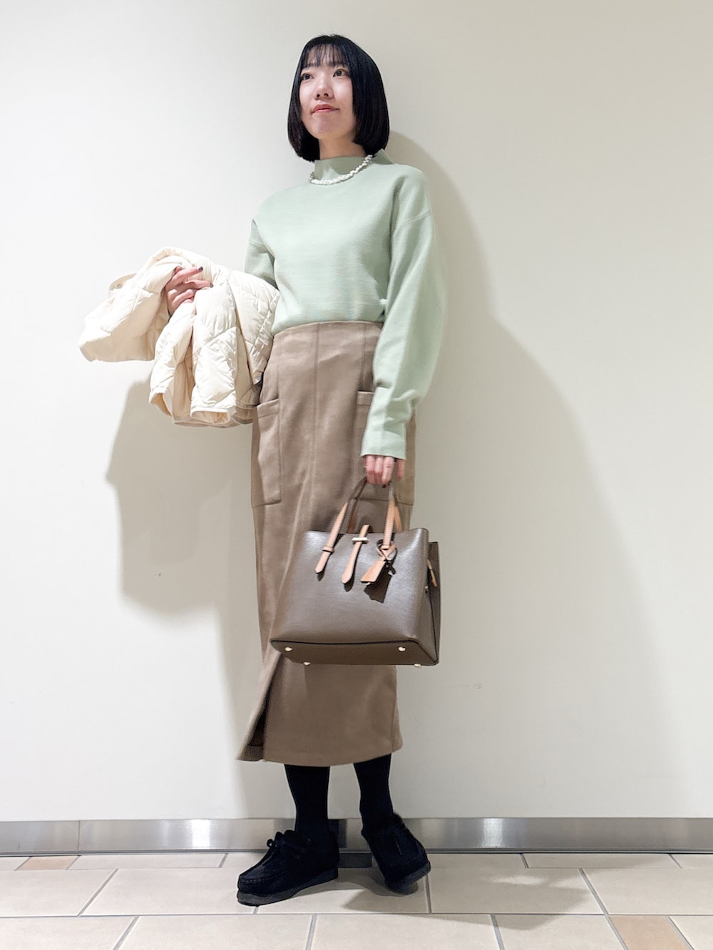 ミントカラーで春先取りしてみました!ボトルネックなので窮屈感無く、首周りを守ってくれます♩