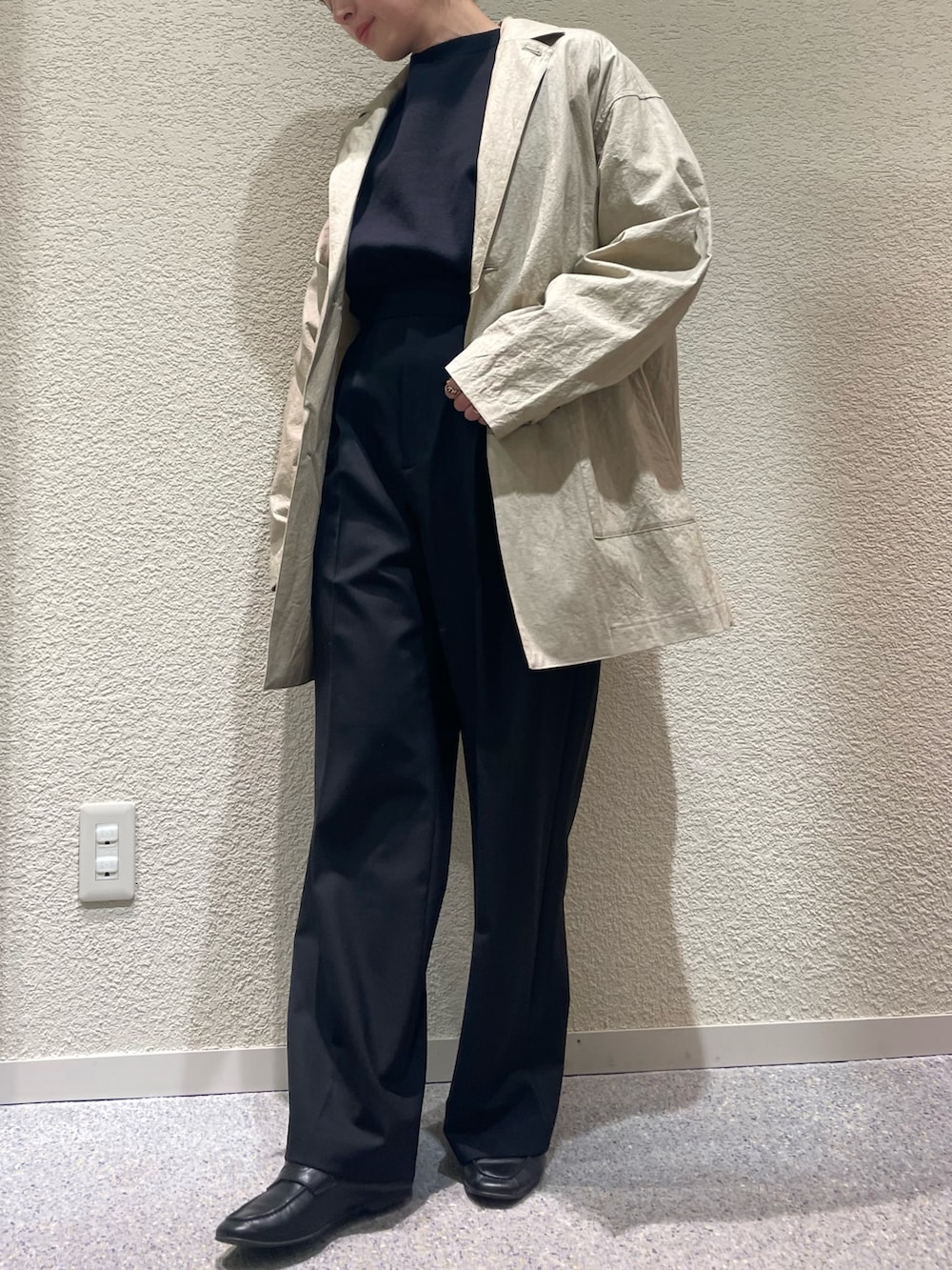 コットンテーラードジャケット、相変わらずサイズ2をバサっとジャケットコートの様に着るのが好きです〜♡