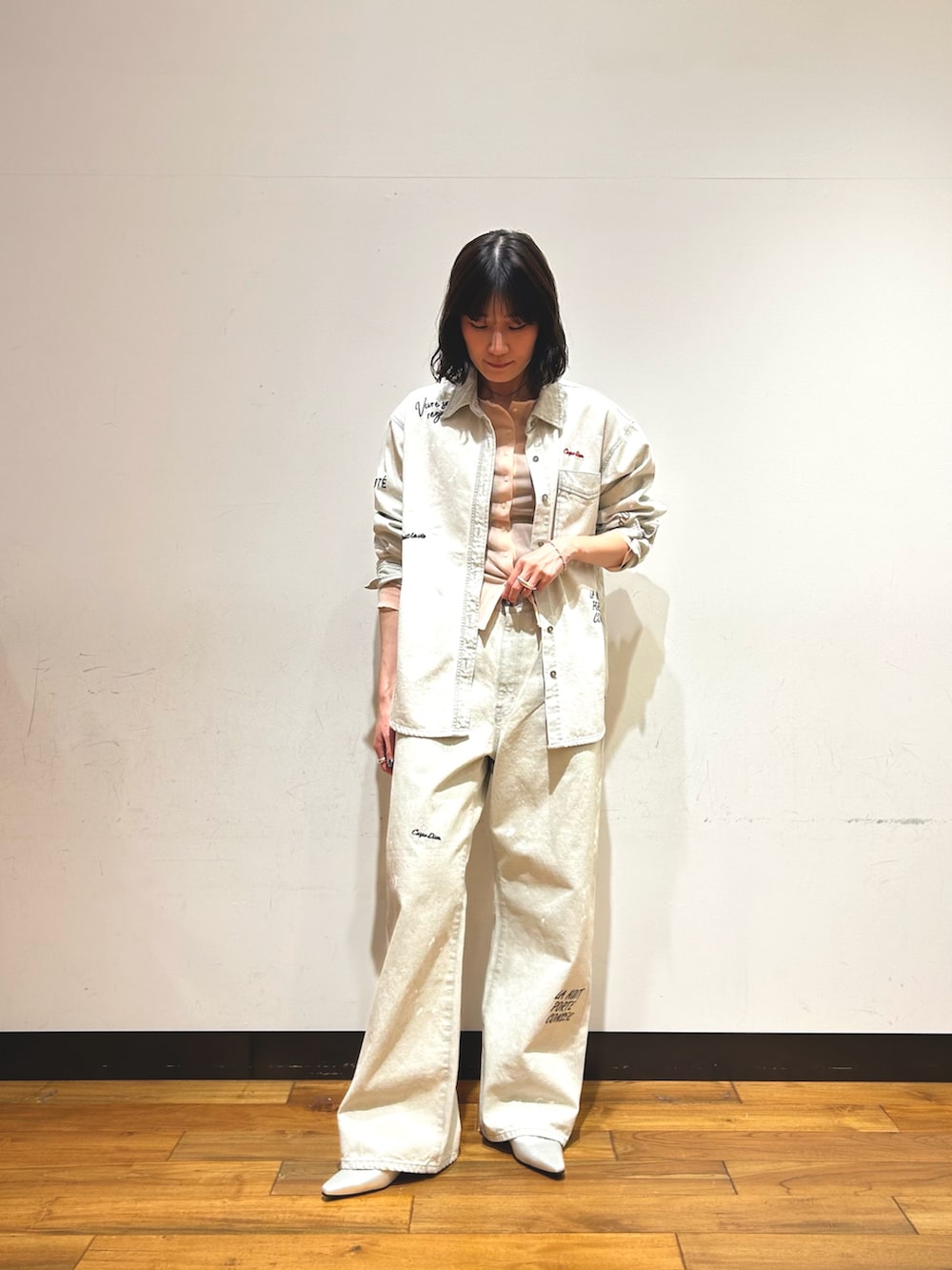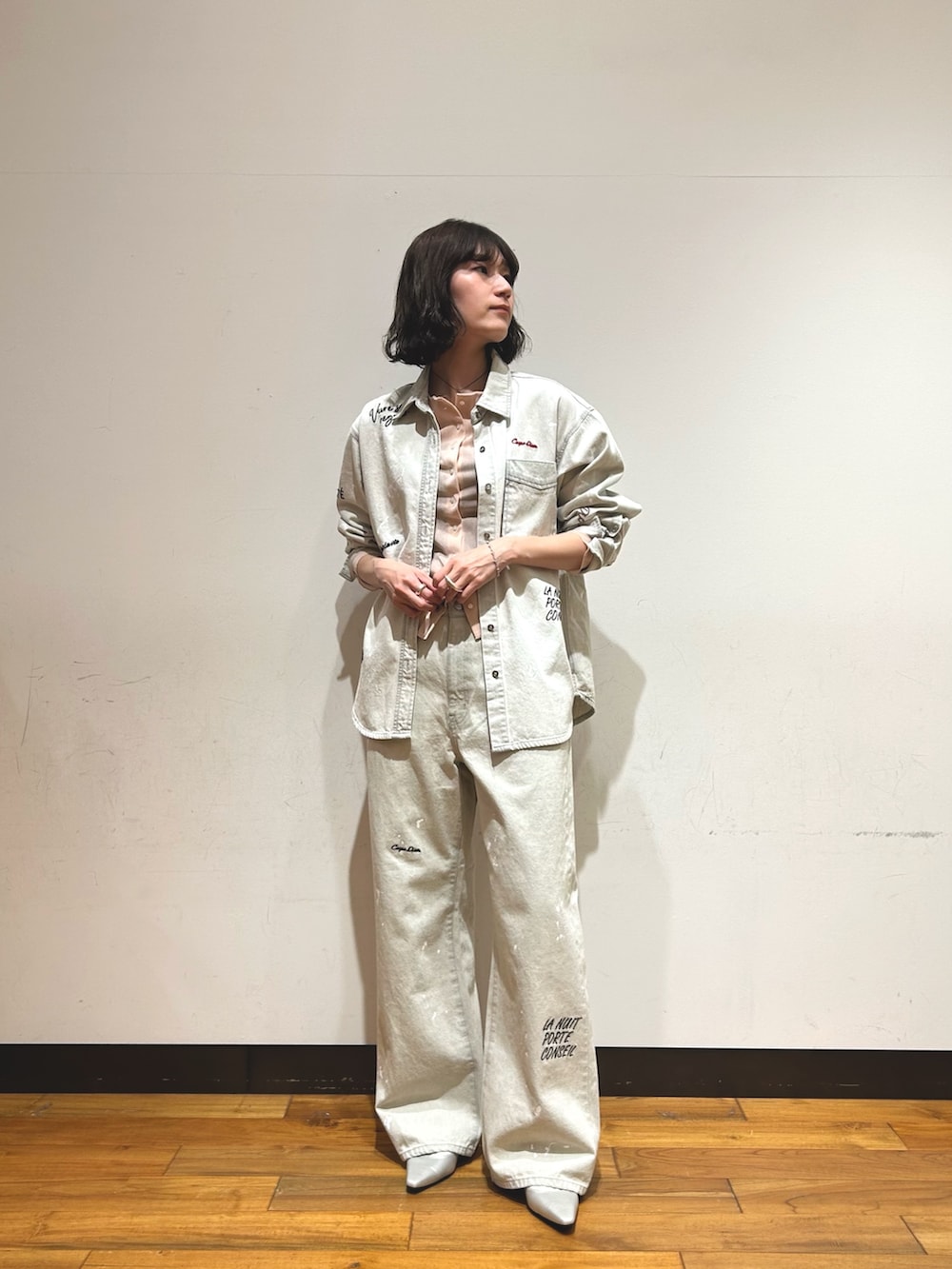 春らしいグレーカラーですが、デニムなので今時期からニットと合わせて着用できます✨