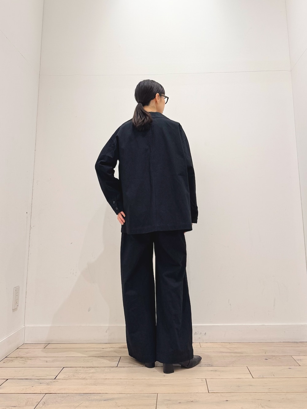 ジャケットはカーディガン感覚で羽織れるラフさと軽さです。生地がきれいなのでオンオフ使えます‼︎