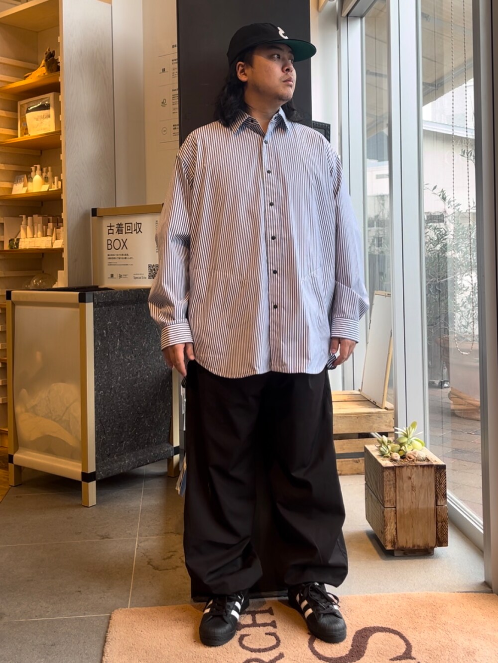 こちら細めストライプのデザインでオーバーサイズで着用してもスタイルが良く見えます!