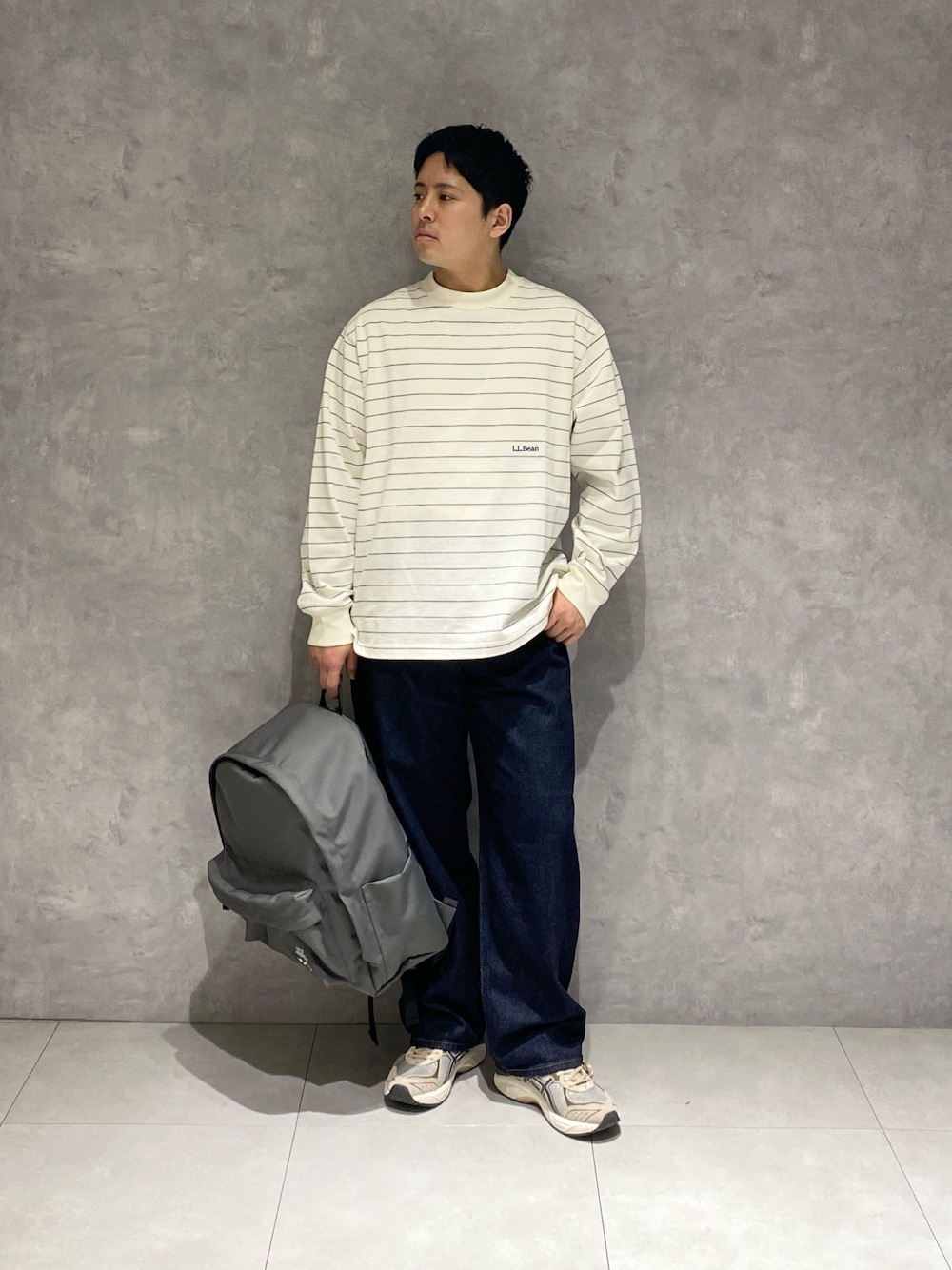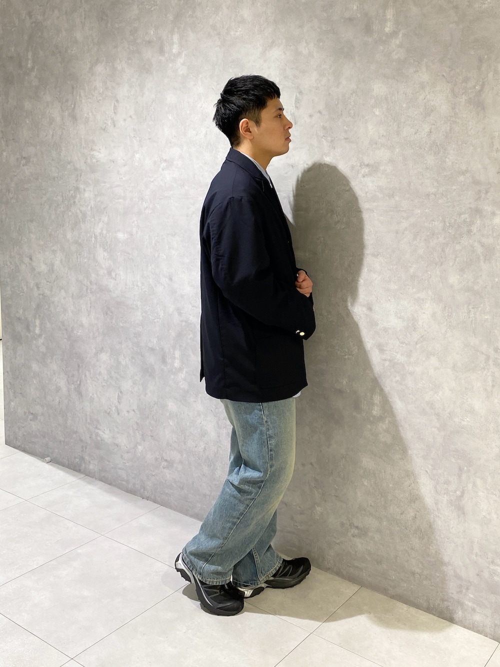 今回履いた別注デニムは太すぎずなストレートシルエットなので足の長さを維持しつつゆったり着ることができるのでおすすめです^^