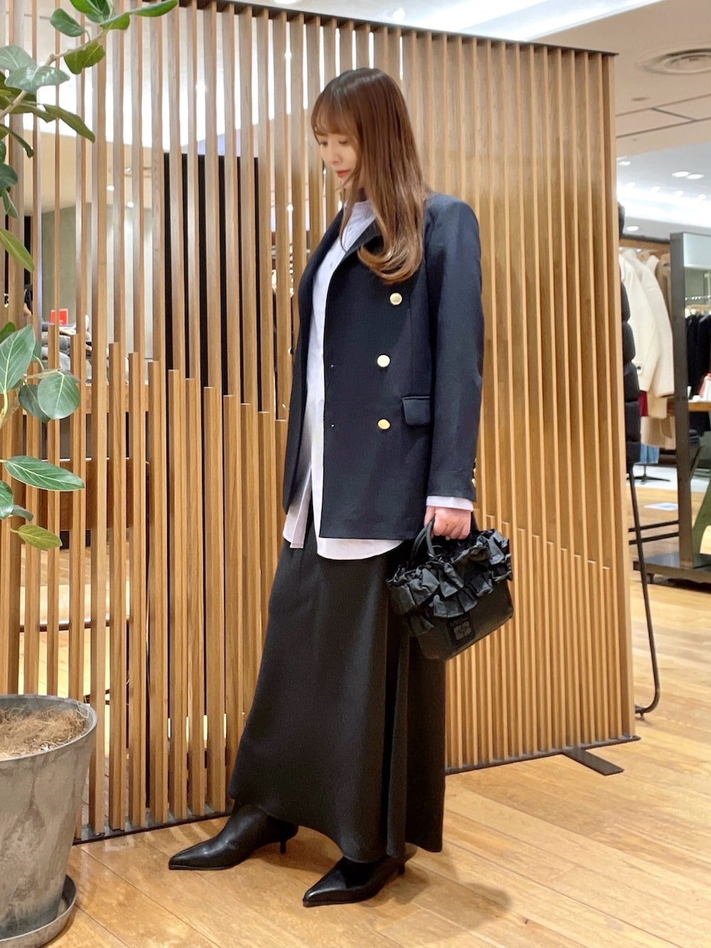「主役ではないけど、きちんと感はもちろん、ちょっとした華やかさがあってもいい場面」なので、金ボタンのジャケットは実はしっくりくるアイテムです!