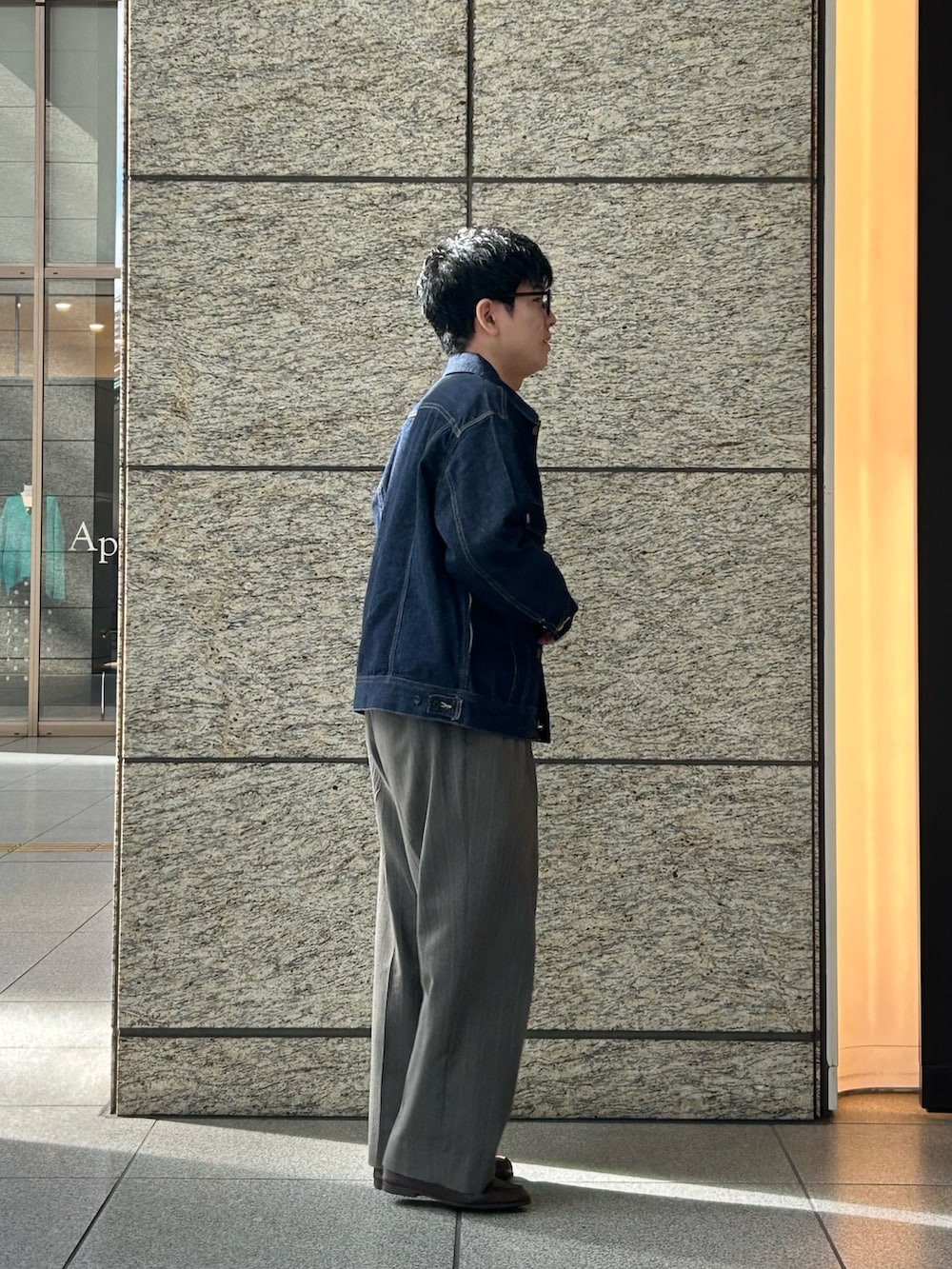 春を意識してボーダーロンTで合わせましたが、ゆとりあるサイズ感なのでスウェットやニット、インナーは選ばず着用できます。