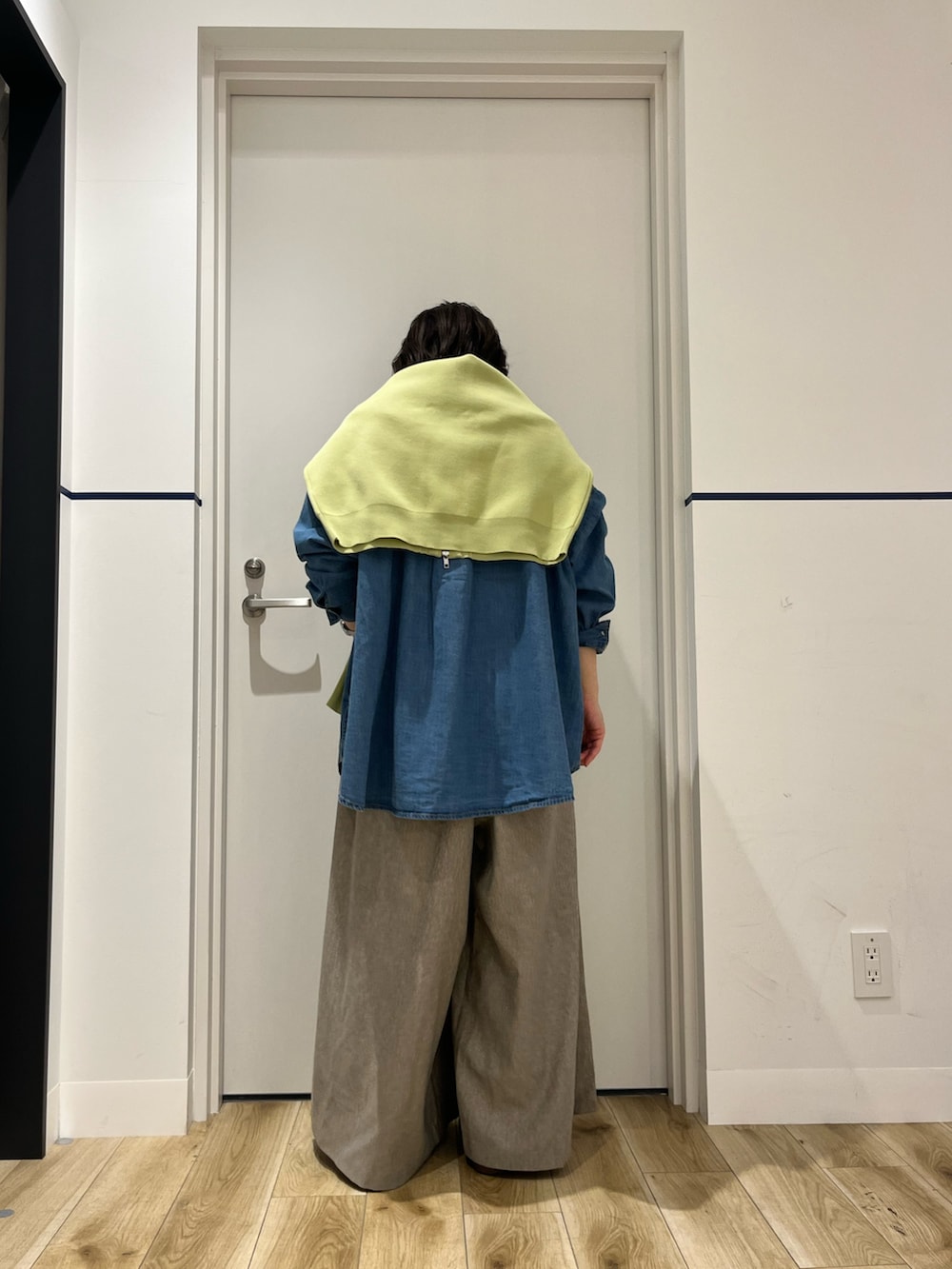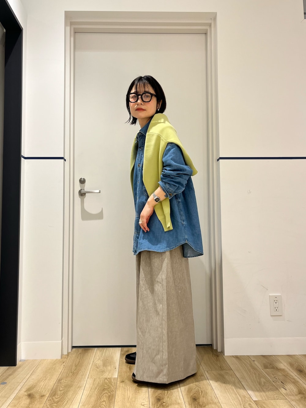 ピスタチオカラーを差し色に肩掛け