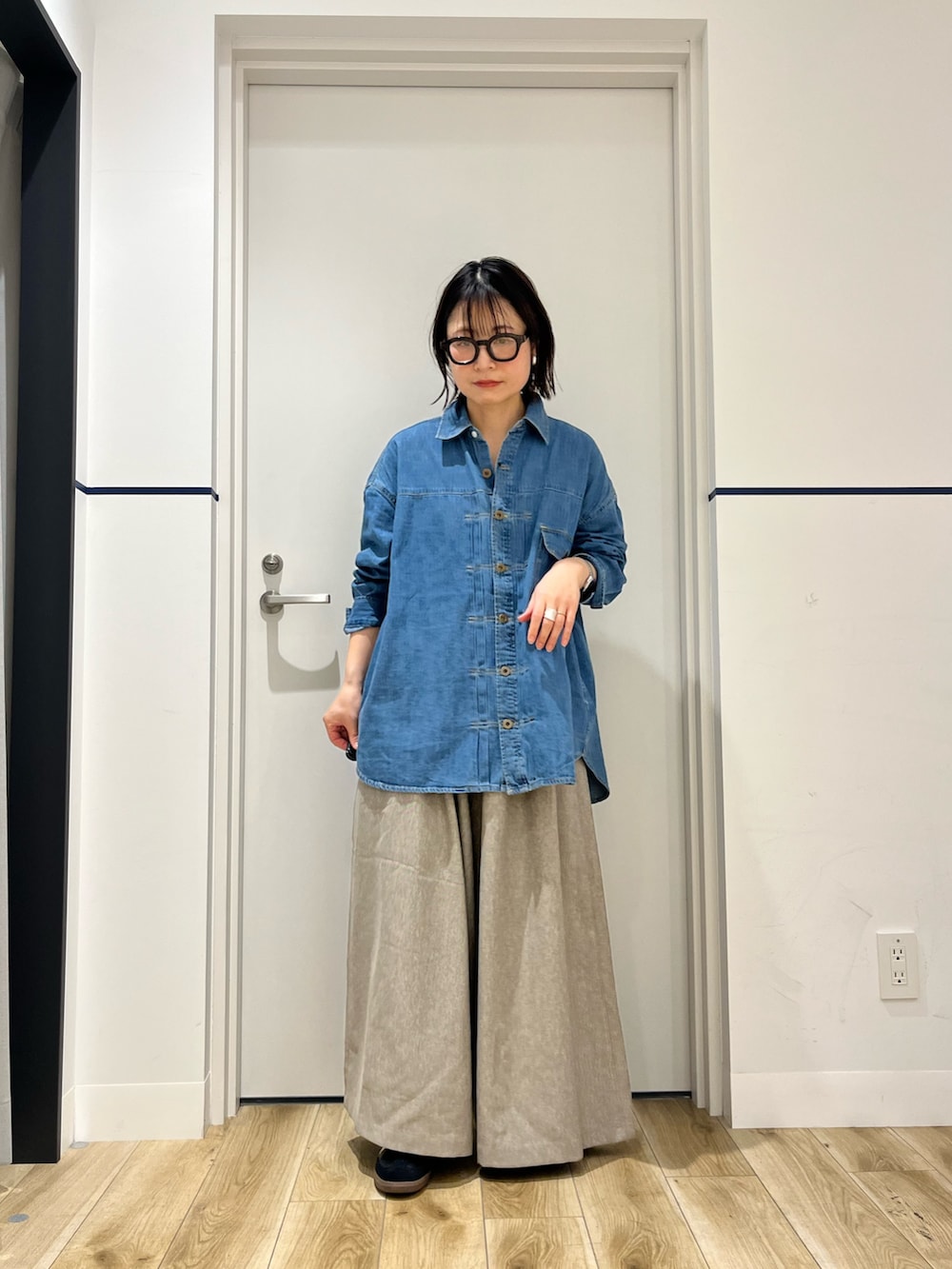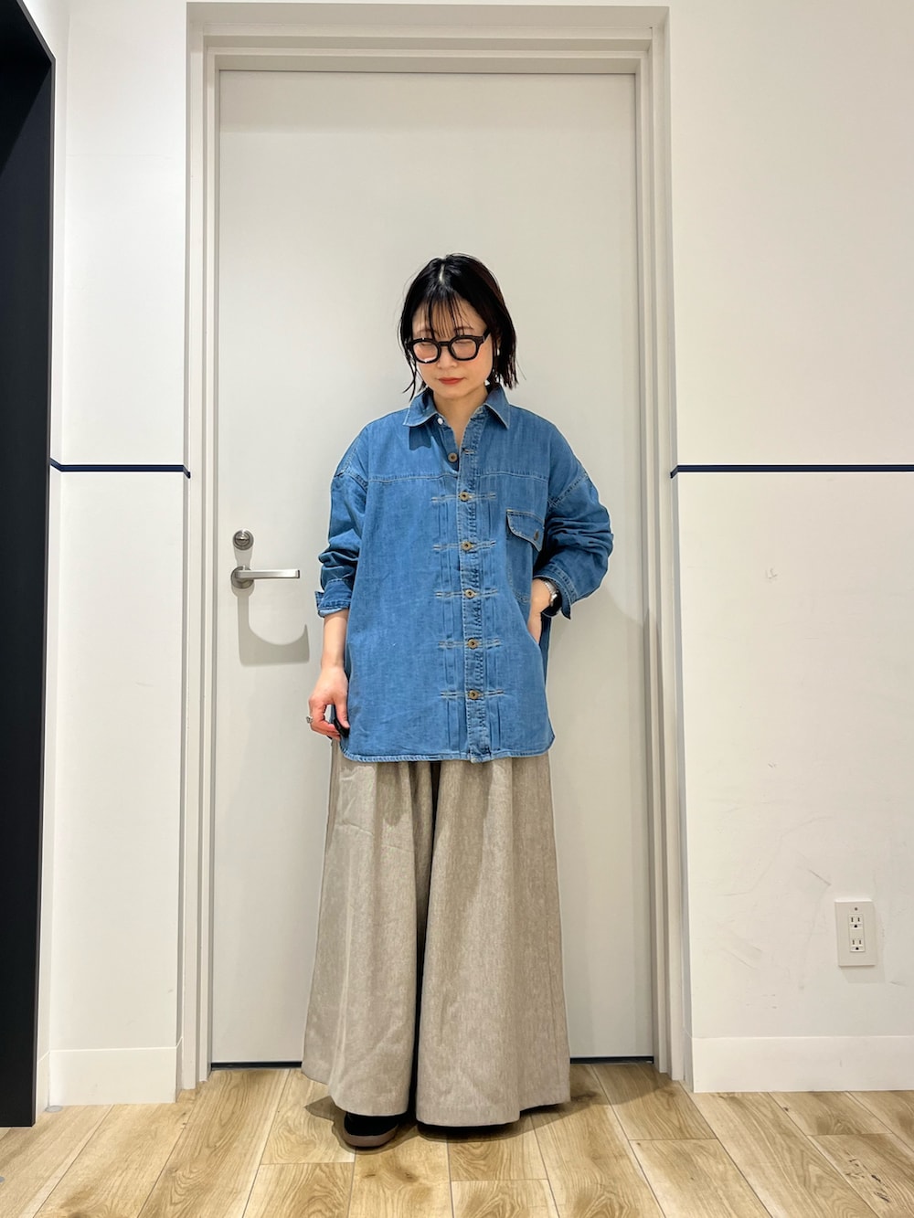 8分丈ワイドギャザーパンツを合わせました。