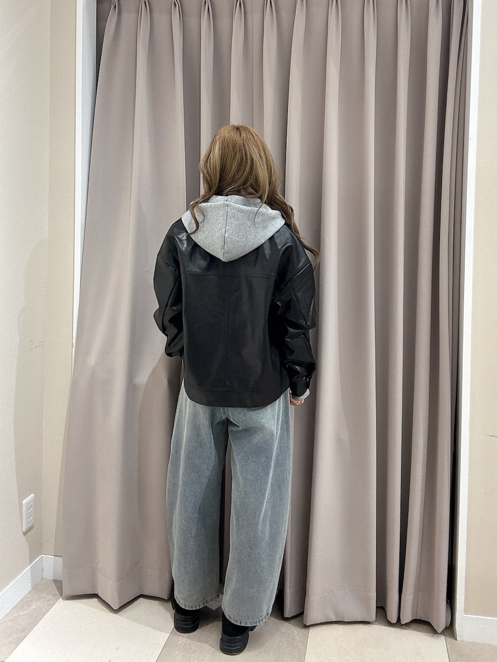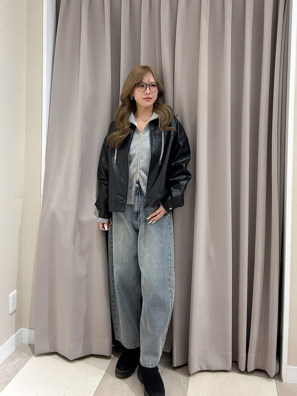 ITEMSフェイクレザーZIPUPブルゾン- カラー: