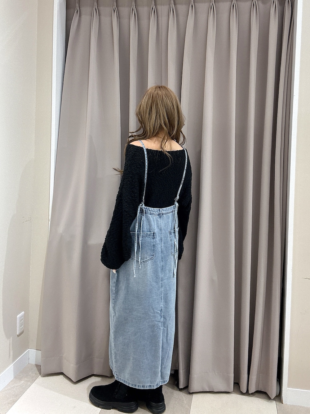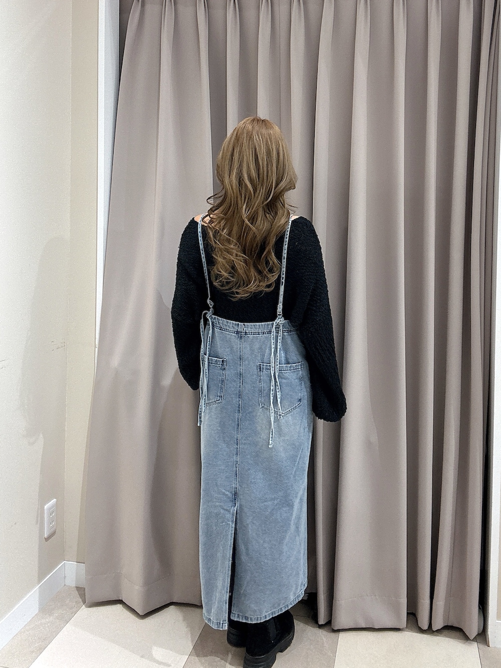 デニムのキャミワンピはアジャスターで