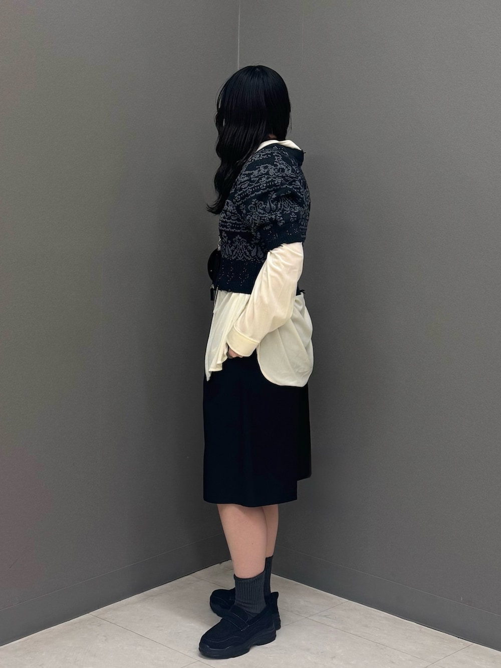 同素材のジャガードニットスカート(KB26130-2055010)とのセットアップの着こなしもおすすめです!