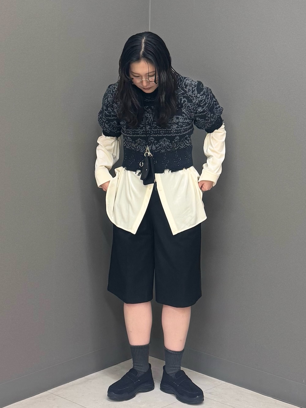 シアーシャツをinしてレイヤードスタイルに