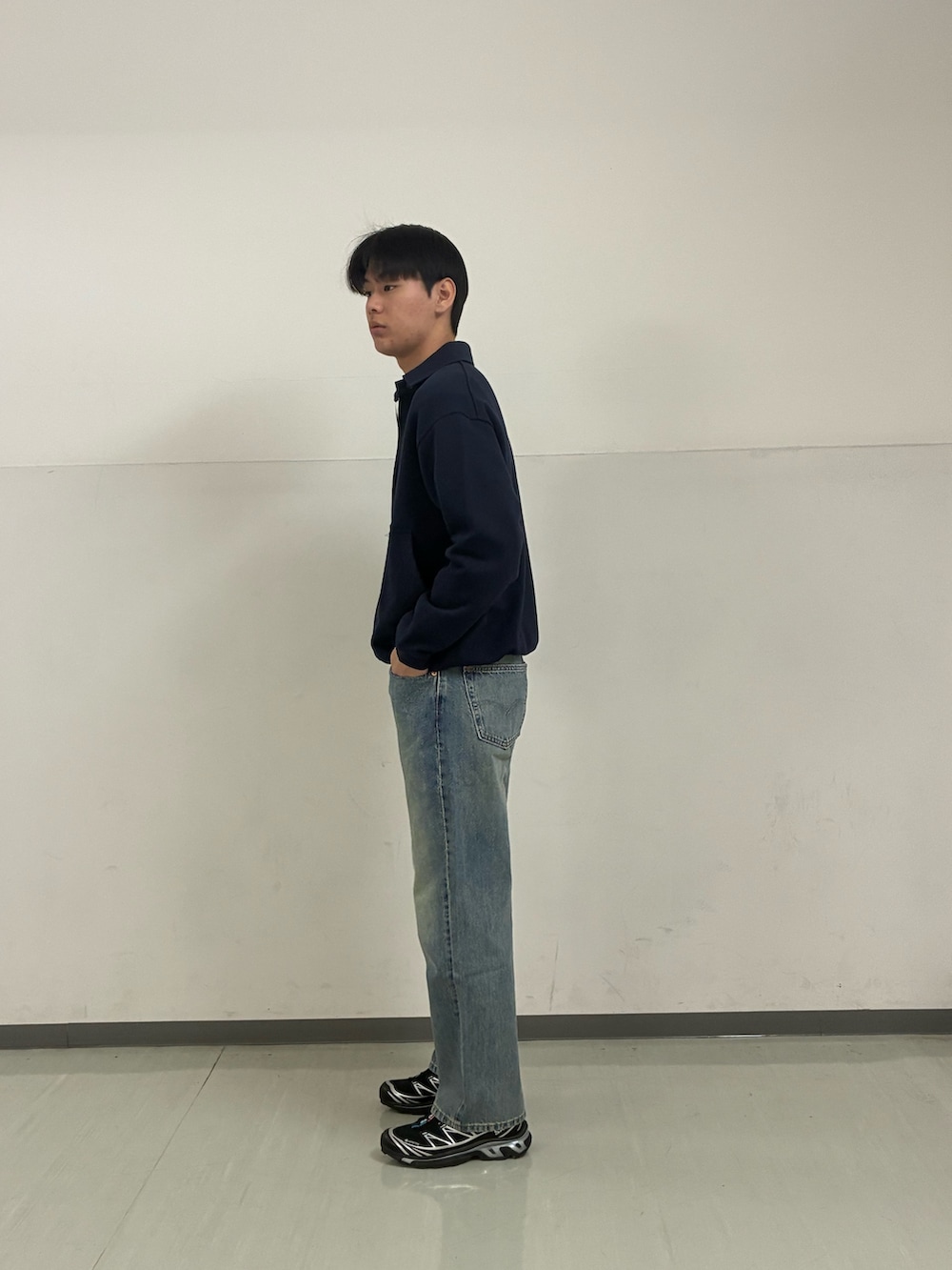 Levi's別注「565™ルーズ・ストレート」を主役にしたコーディネート。