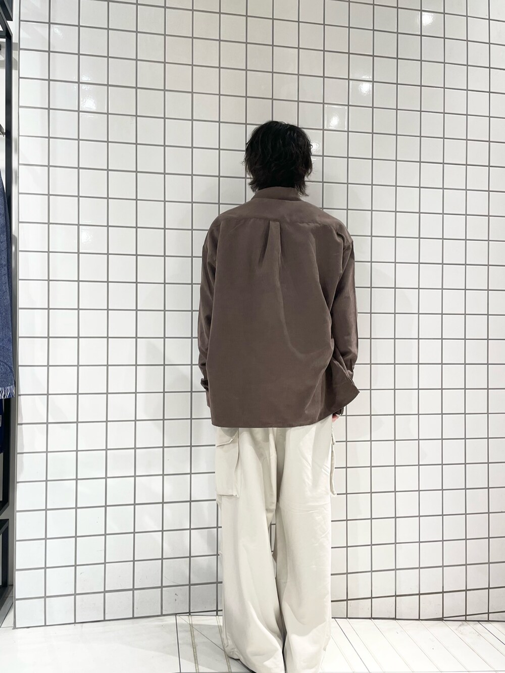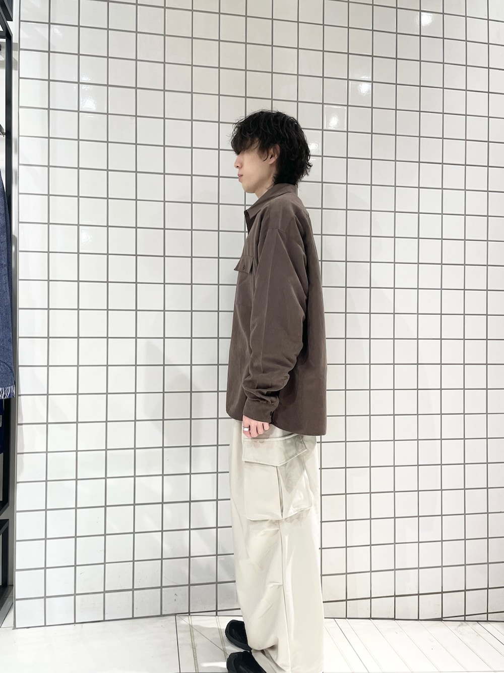 フェイクスエードのシャツは、ダブルポケットデザインでミリタリー雰囲気でも、スラックスで上品にも合わせやすくなっています!