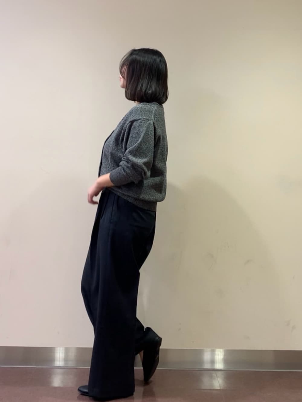 裾のリブが強めなので好きな位置でキープできるのが嬉しいです!! ニット生地ですが密度があるので春先も肌寒くなりにくそう💁🏻♀️