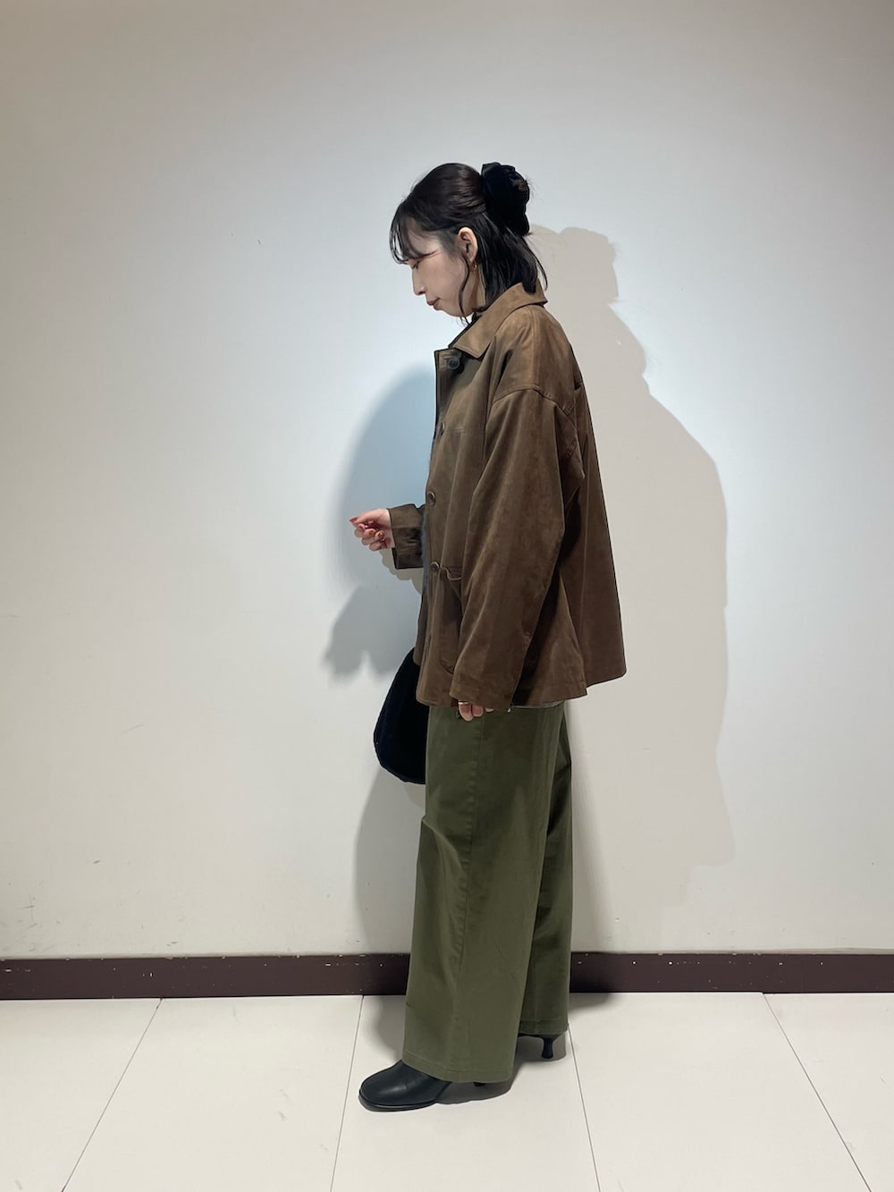ボトムスは新作のストレートパンツで柔らかくサラッとした質感が心地いいです!