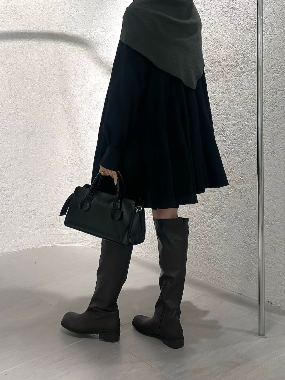 ロングブーツと合わせてチラッと足出しにするのがおすすめです〜