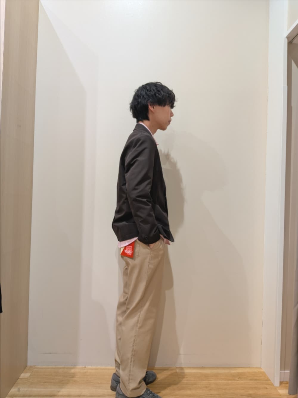 インナーはテディベアの刺繍シャツで、アウター脱いでもワンポイントがありさりげなくお洒落です。
