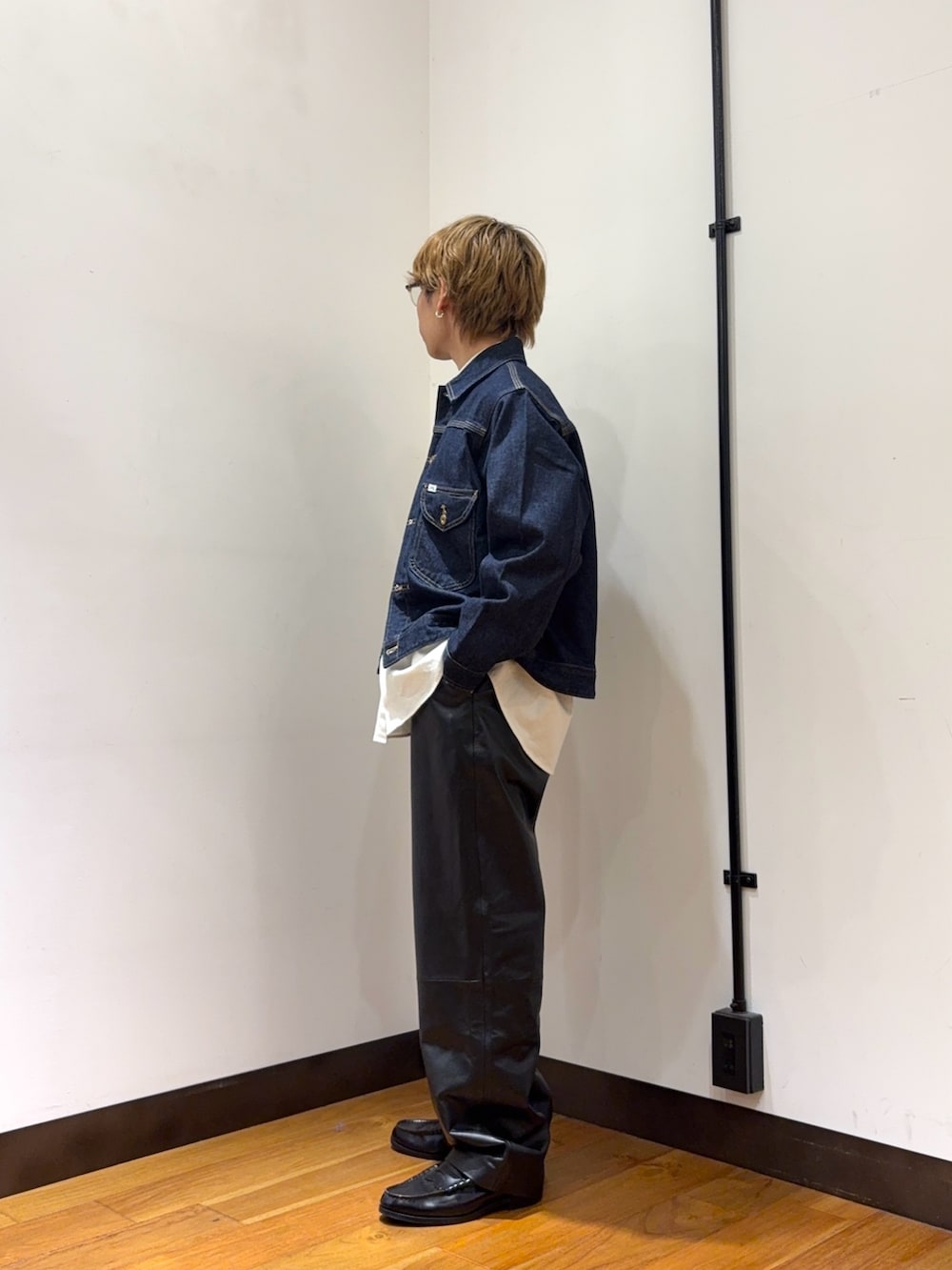 今回はone washのカラーでコーデを組みました。リジットよりかは柔らかい質感なので温かみや動きやすさがあり、デニムデビューをしやすい1着だと思います。しかも短丈なので低身長の方でも簡単にスタイルアップできます◎