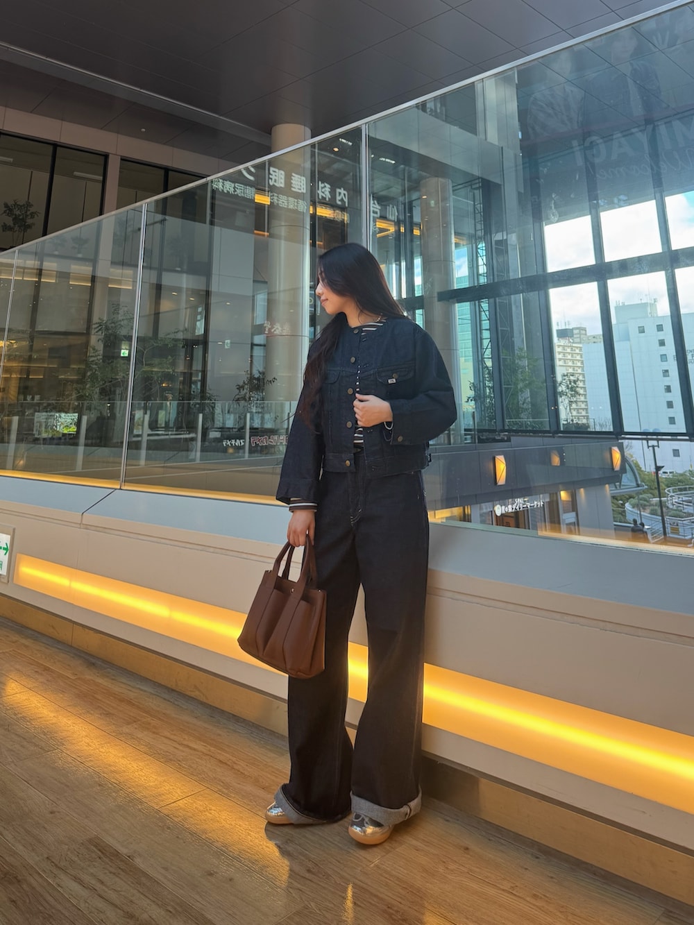 デニムジャケットはノーカラーでパンツスタイルだけでなく、ワンピースやスカートとの相性も抜群です✨