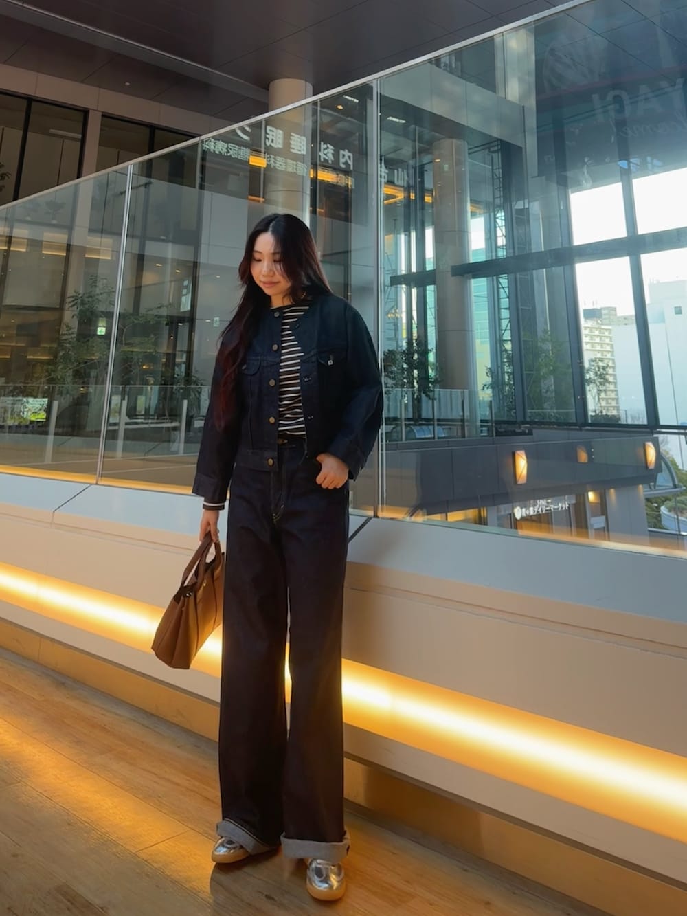 今回は中にボーダーのトップスを合わせてみました!