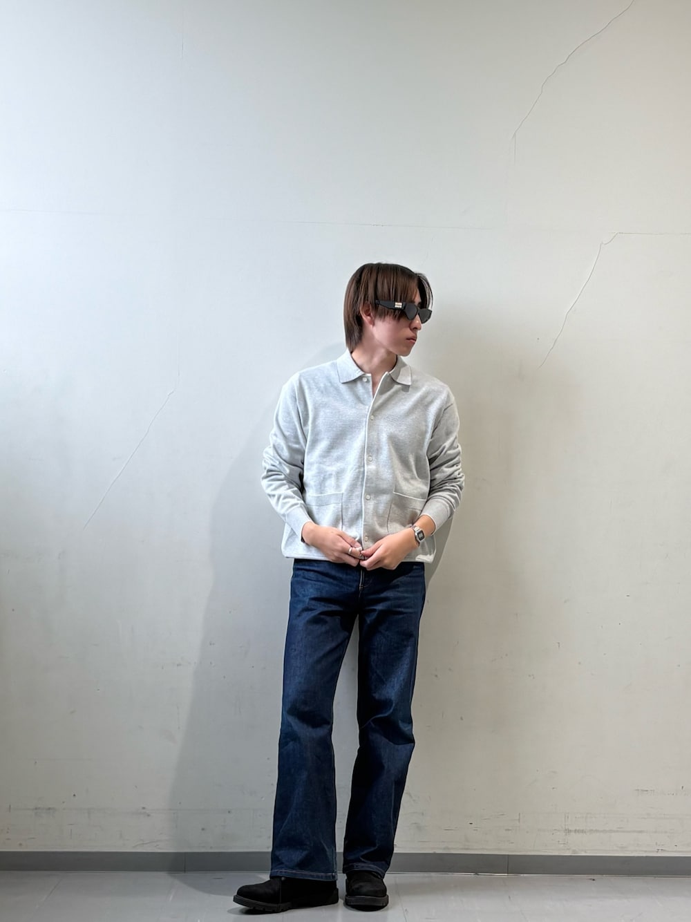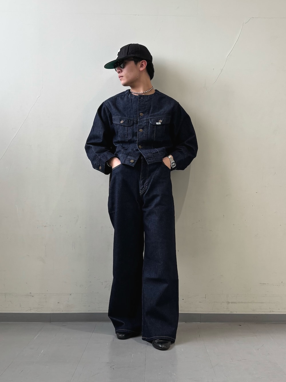 今回のジャケットは、『別注』Lee101×ROSSO NOCOLLAR SHORT JACKETになっております!26SSはノーカラーデザイン×ショート丈で軽やかにアップデートしているのが特徴です!レディースの商品ですが私のような低身長でも足を長く見せる大人セットアップの完成です!