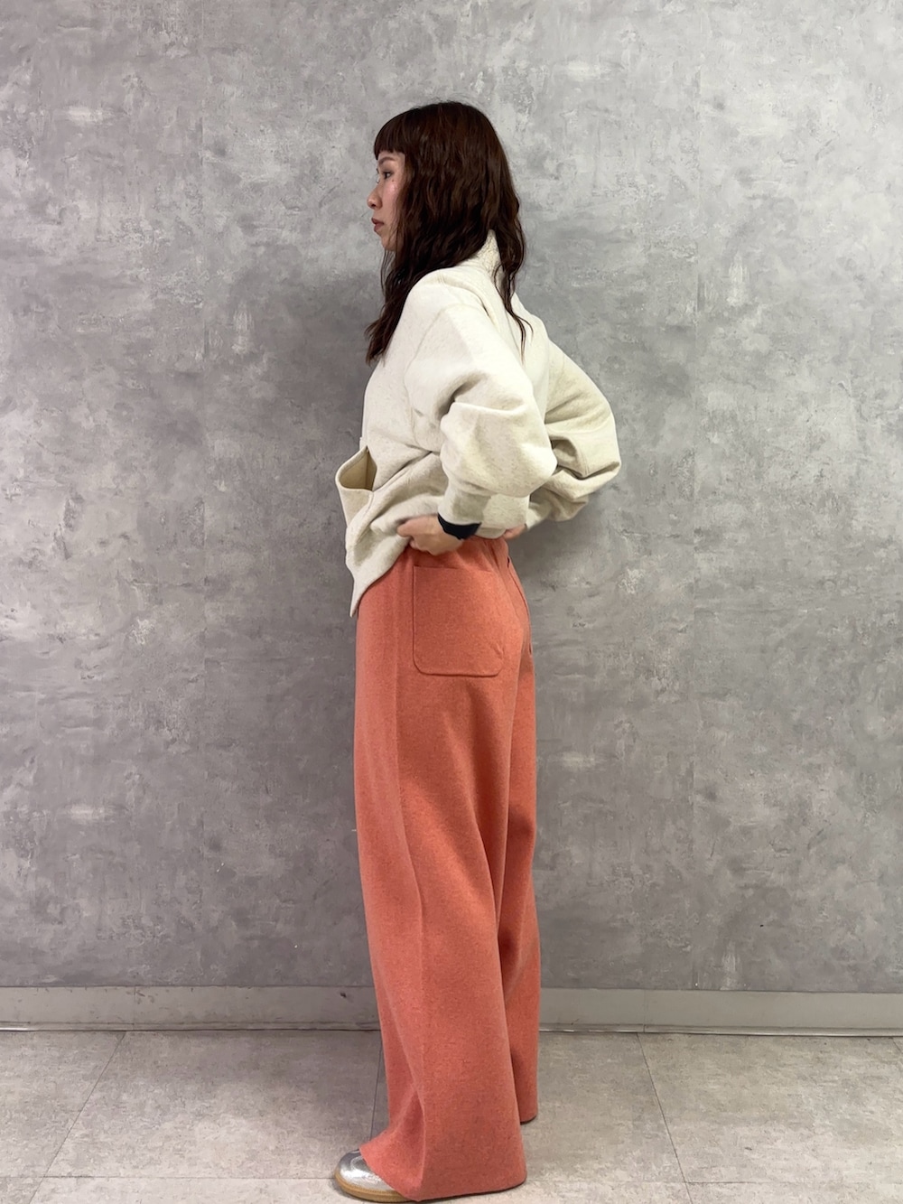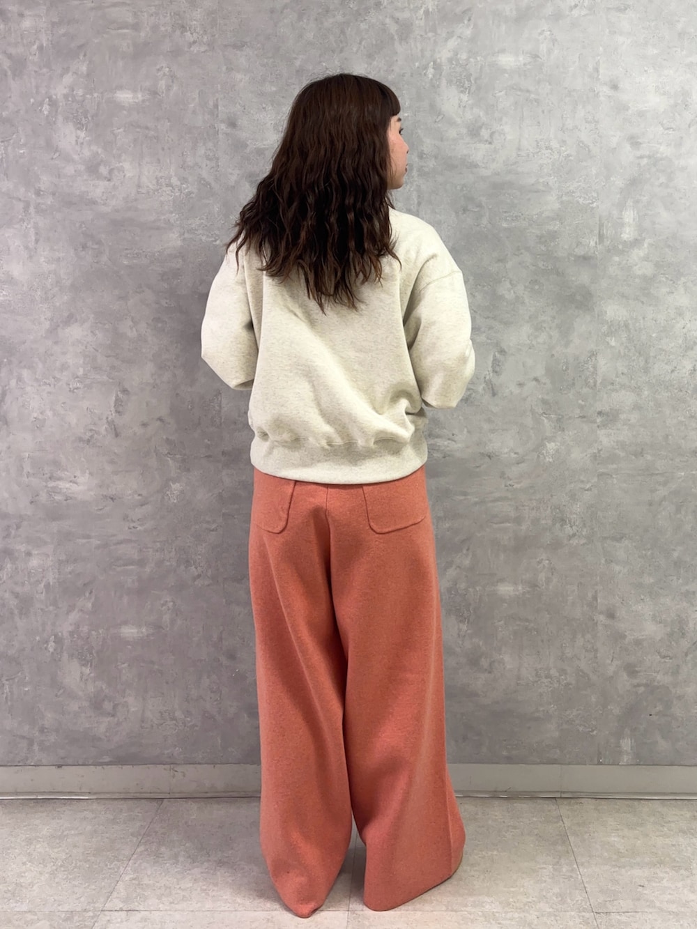 カシミヤ混のパンツはとにかく肌あたり優しく、スウェット感覚で楽々履けるのがポイント◎それでいてラフすぎずかなり高見えする上品な素材感。まさに大人の女性に向けたニットパンツです。