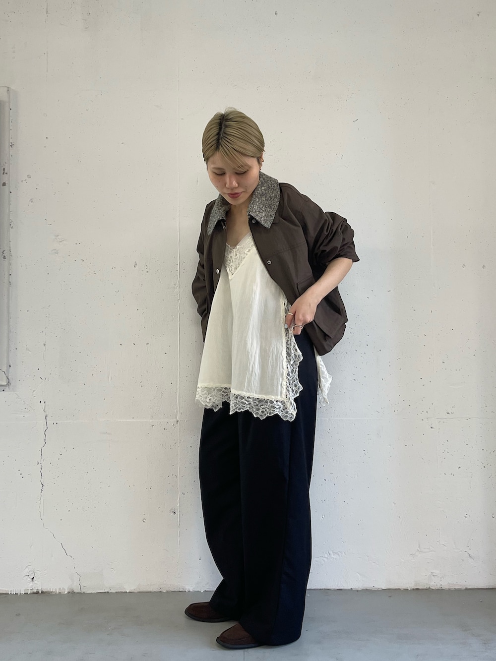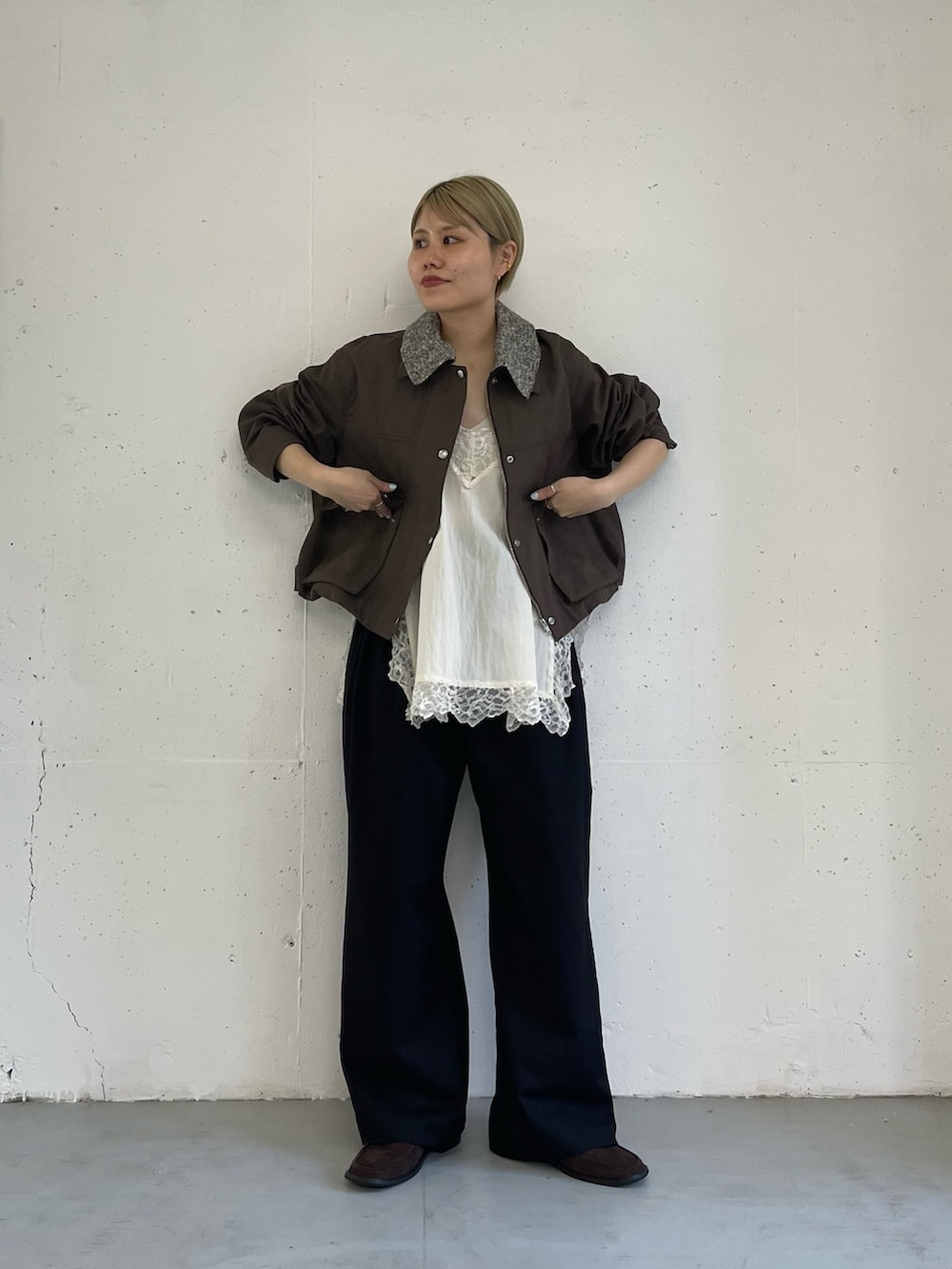 ショート丈のアウターからレースキャミをチラ見せするのが今年イチオシの着こなしです!