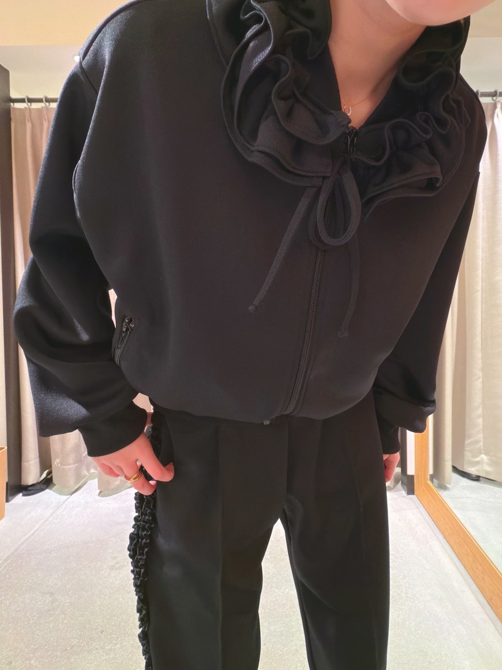ジャージ素材で楽ちんなのに、フリルデザインでおしゃれに着こなせます☆