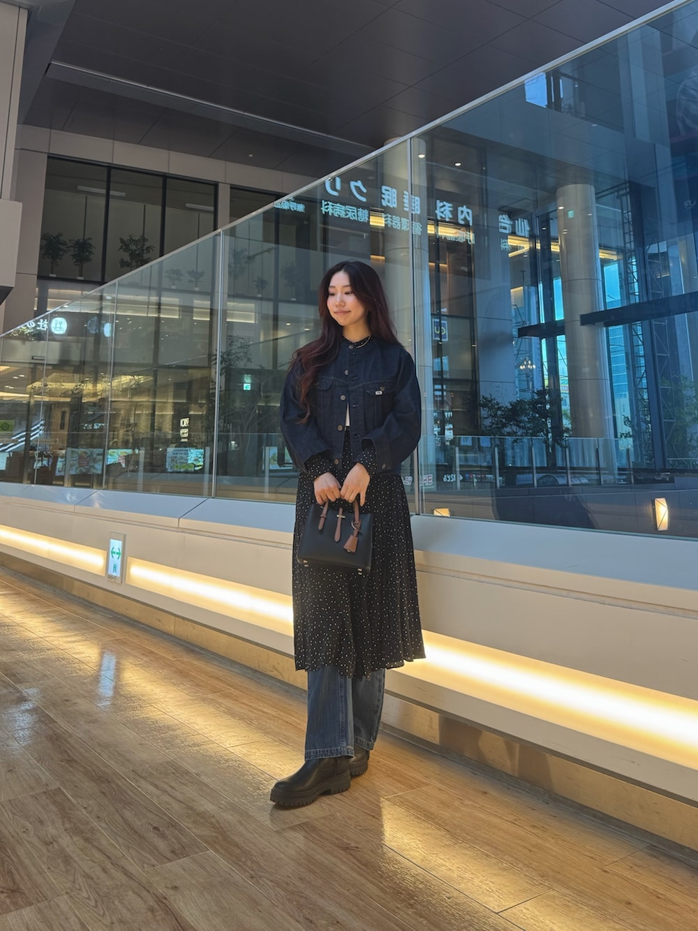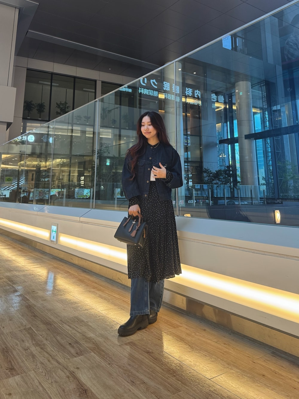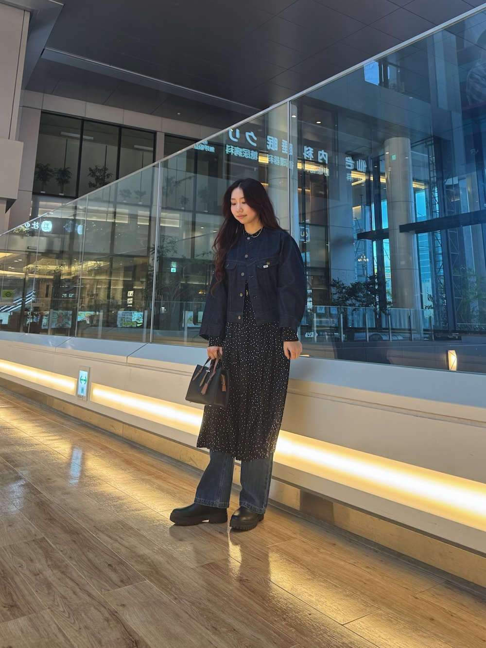 一枚で、様になるデザインですが、特にレイヤードスタイルもおすすめです!今回、私はデニムパンツをレイヤードし、また春らしいLeeのデニムジャケットを着てみました✨