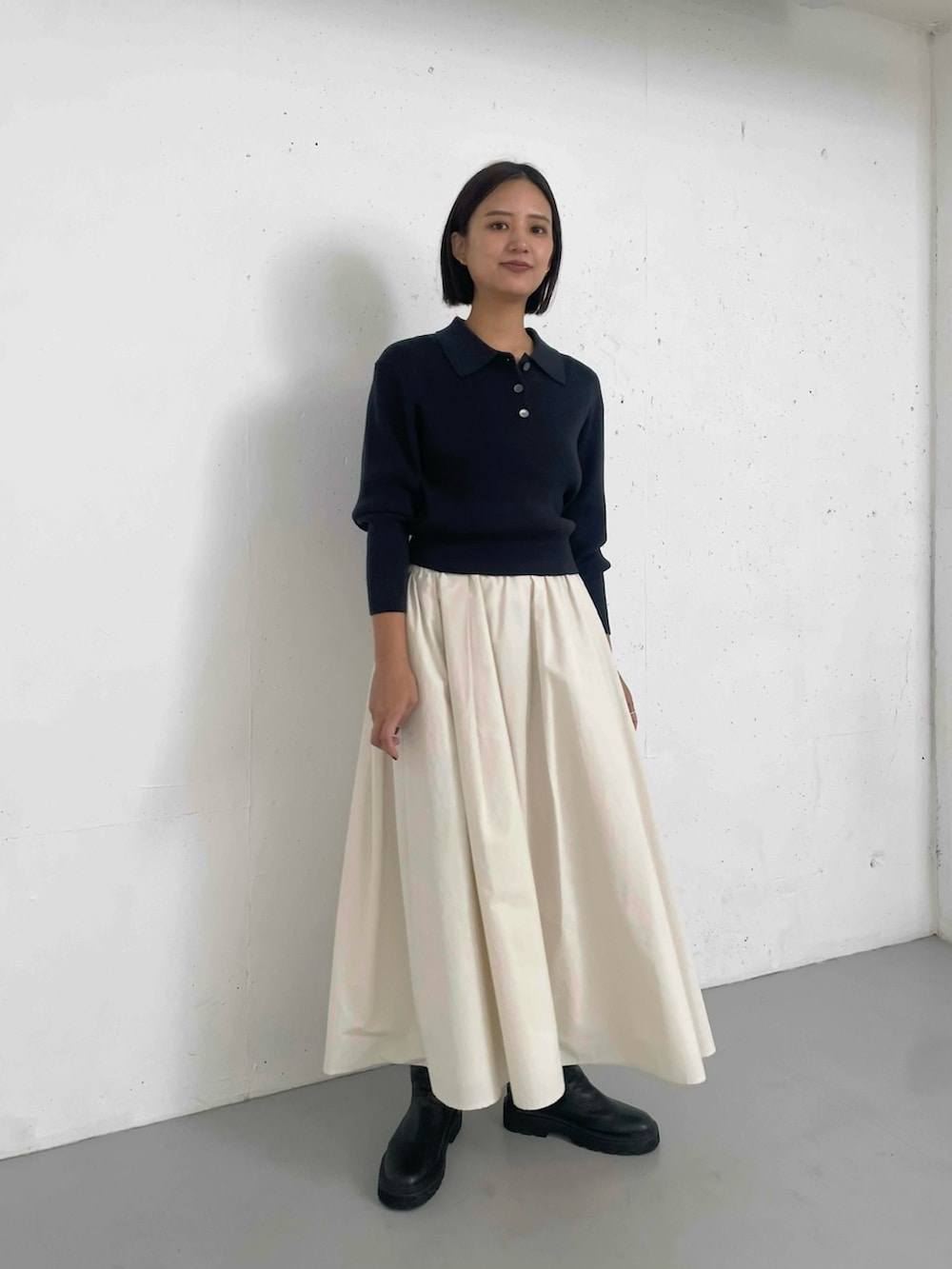 ボリュームスカートにコンパクトなトップスで◎