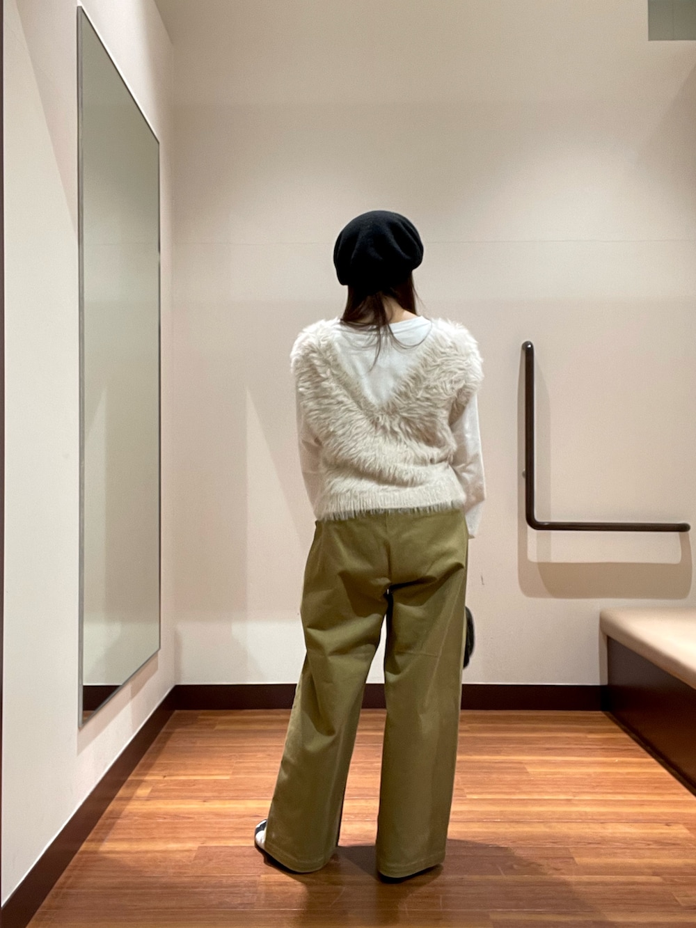 チノパンはゆったりしてますがとても形がキレイで2サイズ展開なので低身長の方にもオススメです👖