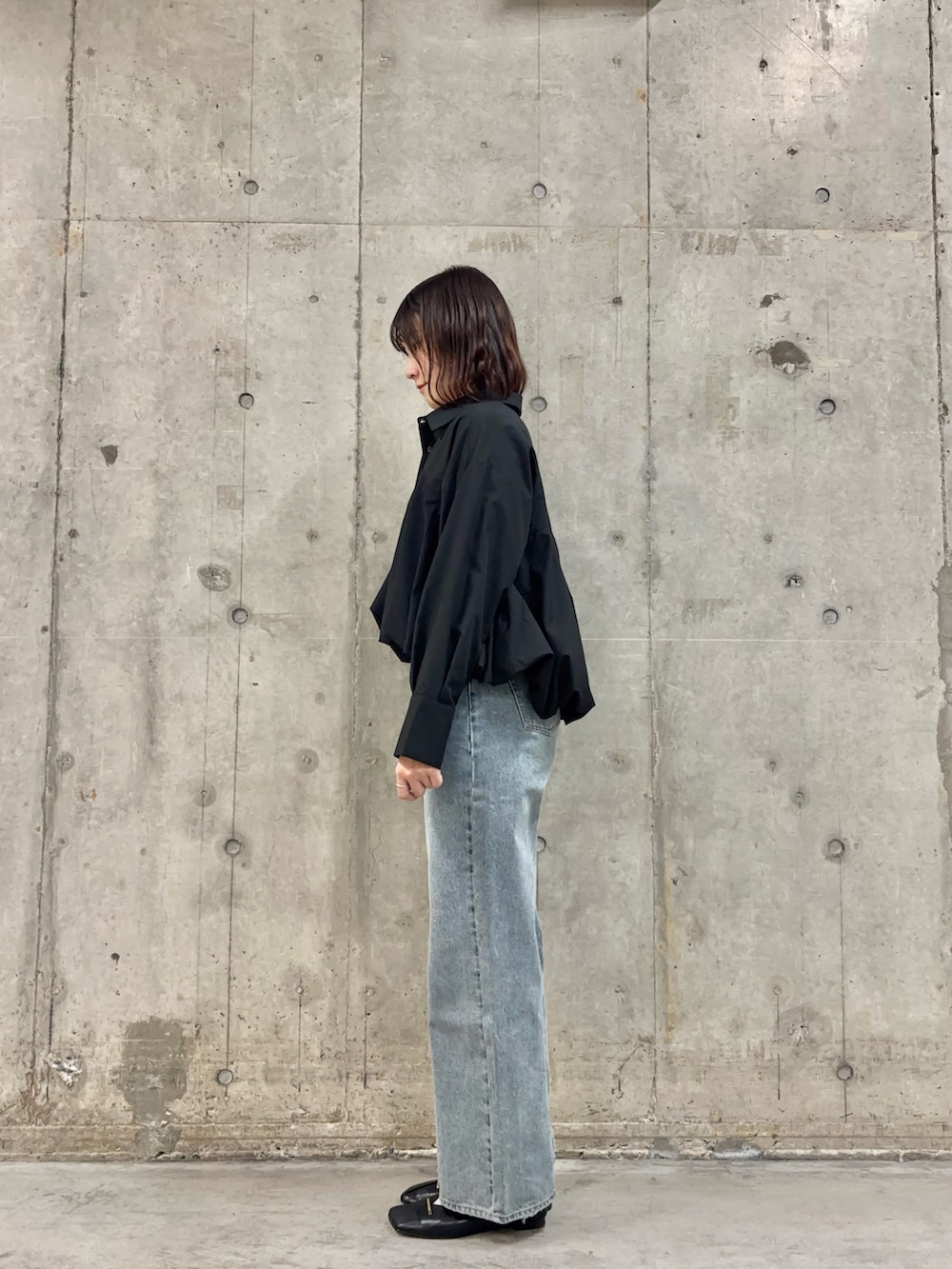 ブラウスは3色展開で、ブラックで若干重くなりやすいですが、今回はイエローのラウンドネックをチラ見せして、抜け感をプラスしてみました!